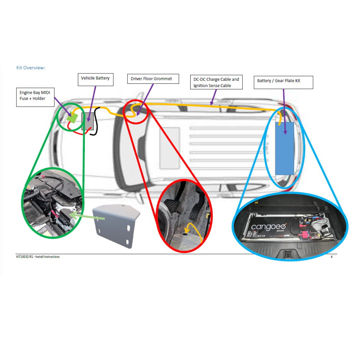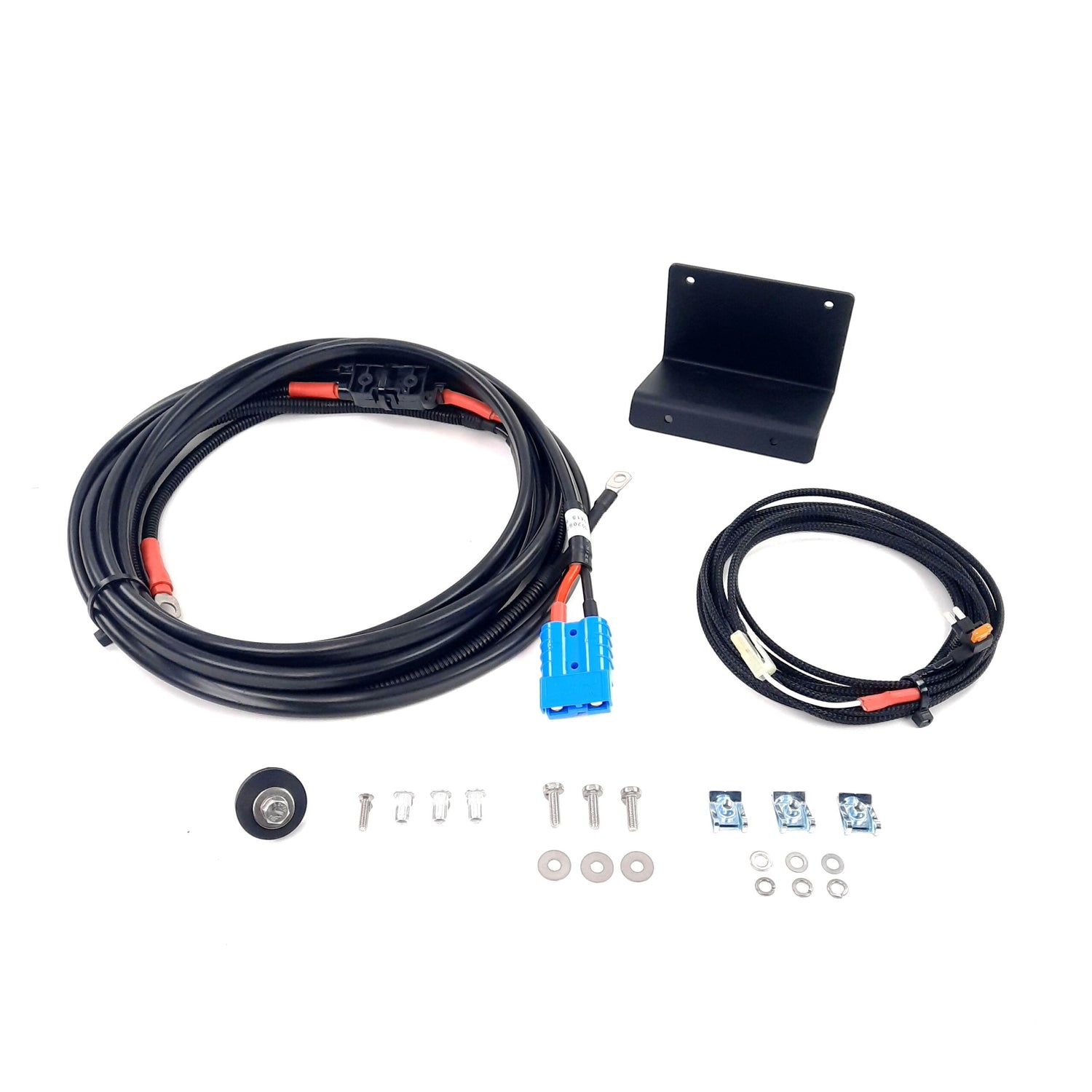 • DC-DC charge cable, ignition trigger harness, engine bay fuse mount bracket, and a detailed installation guide.