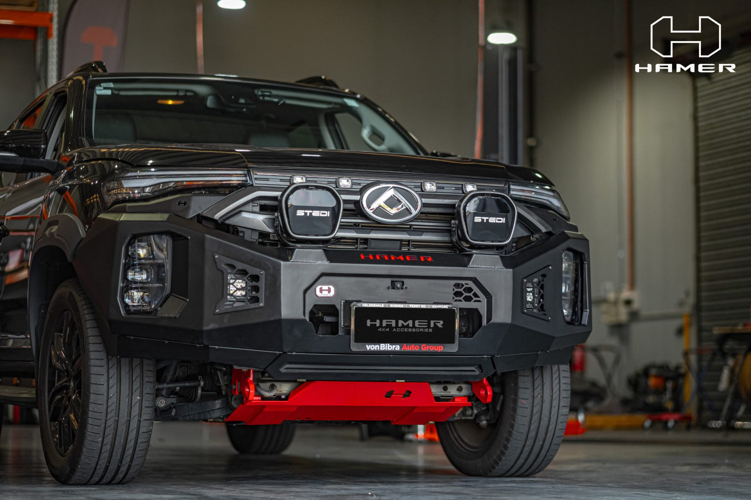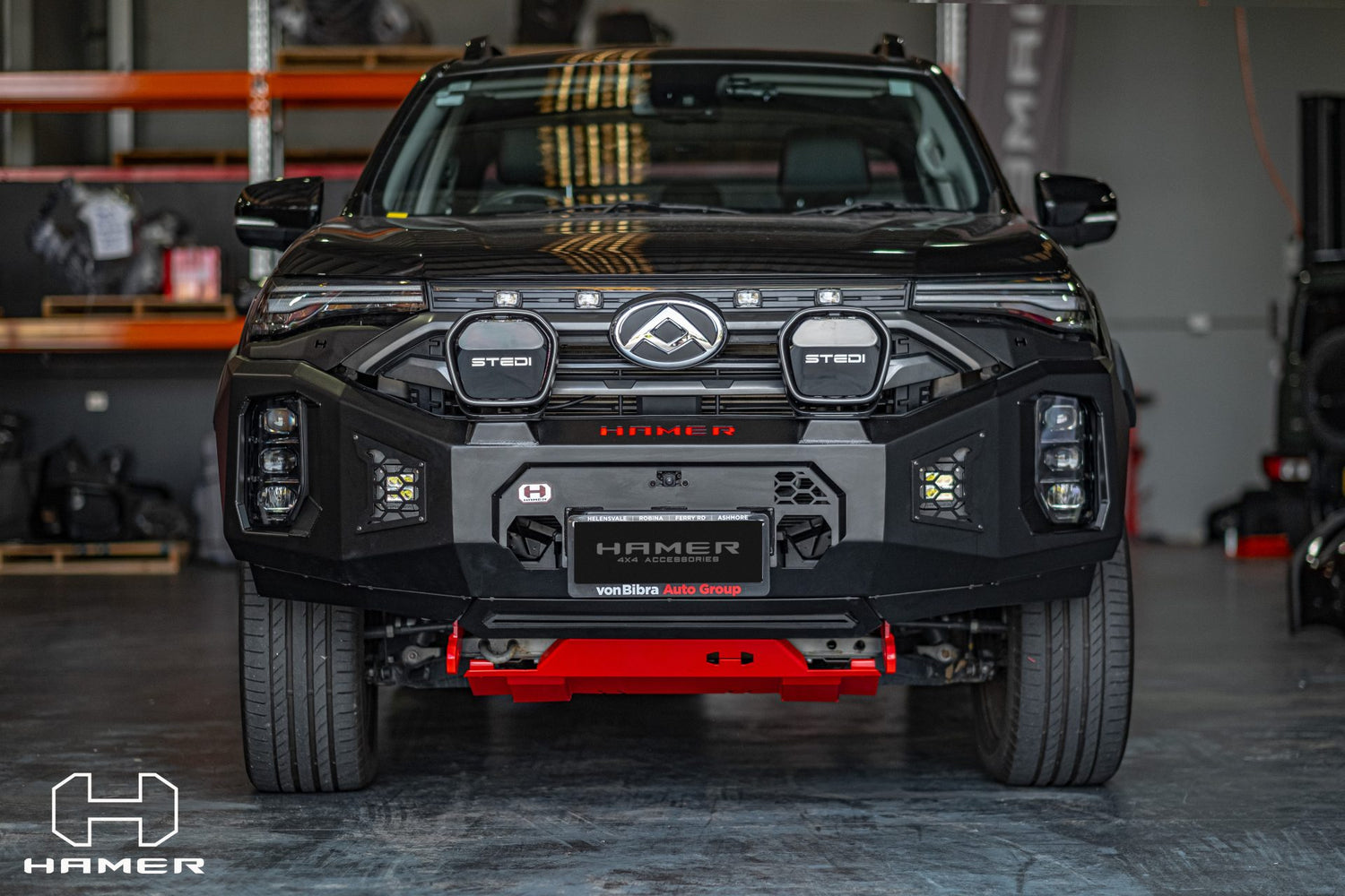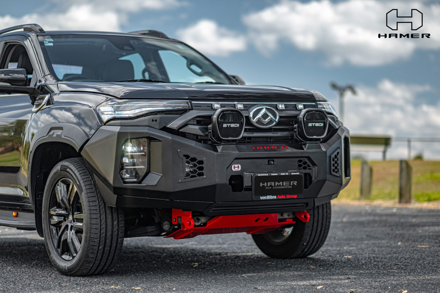 Introducing the Hamer King Series Bull Bar for LDV T60 Max (2022 – Present), the ultimate bumper replacement designed to complement and protect your vehicle. Crafted with precision, this bull bar not only enhances your vehicle’s tough and rugged appearance but also ensures optimum front-end protection during unexpected events, providing you with the confidence to conquer any journey.