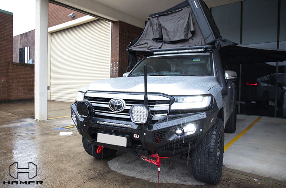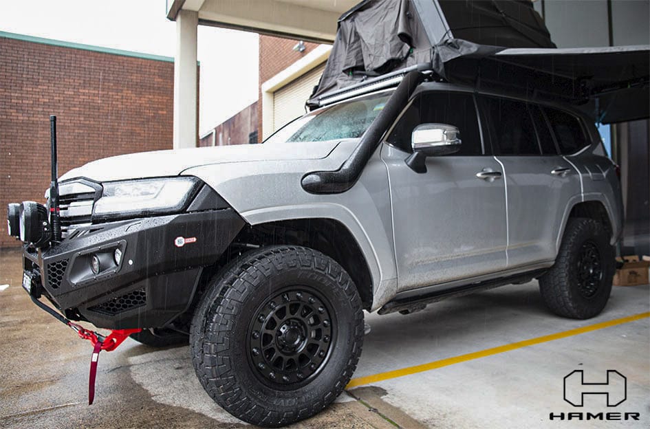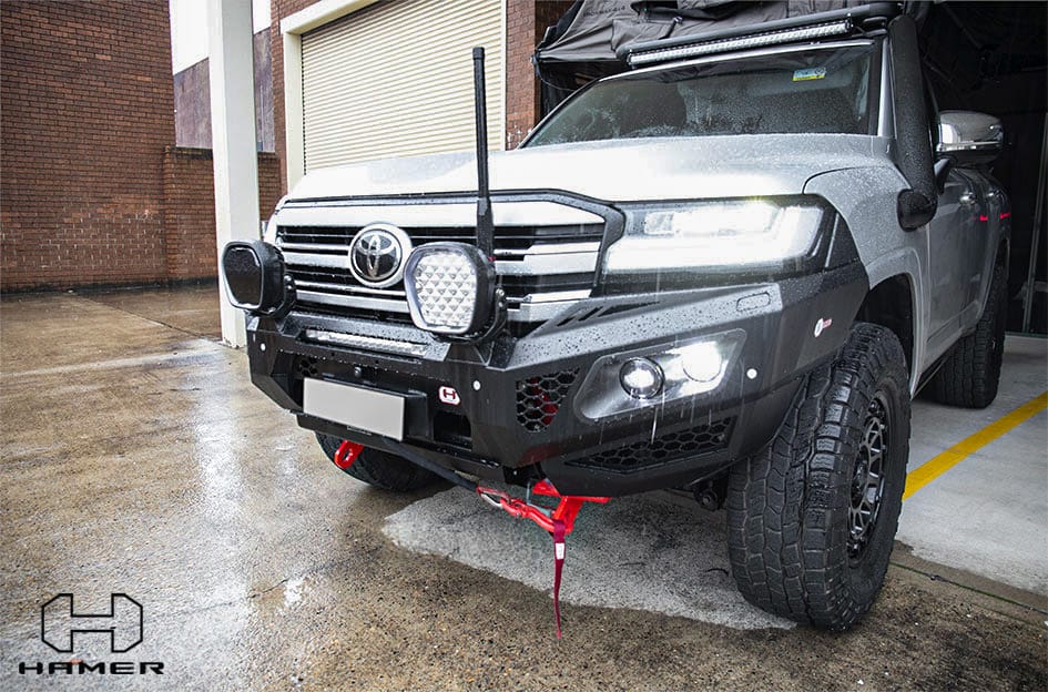 Introducing the Hamer King Series Bull Bar for the Toyota Landcruiser 300 Series (2021 – Present), the ultimate bumper replacement designed for ruggedness and protection. Precision-crafted from high-grade 3 mm steel, it perfectly fits the Landcruiser 300 Series, offering a tough, commanding look for any journey.