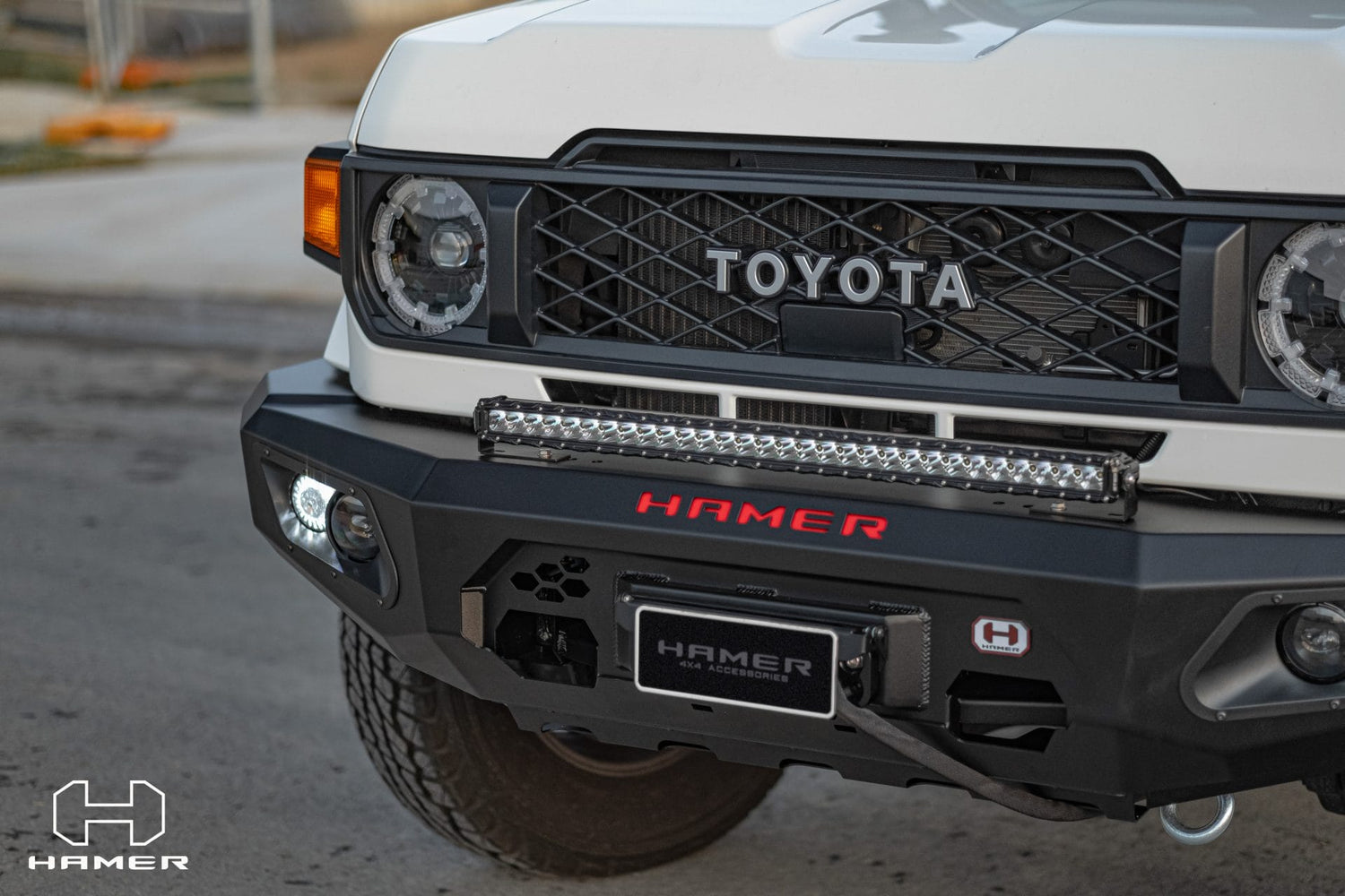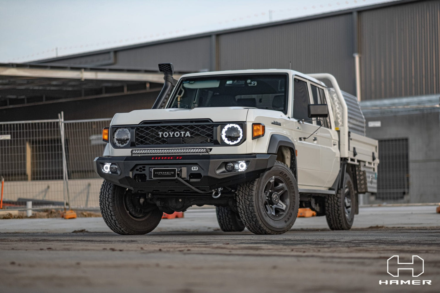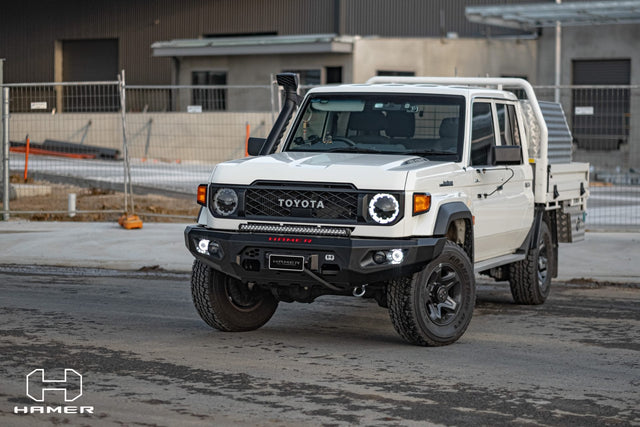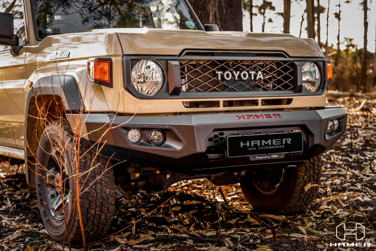 Hamer King series bull bar is a bumper replacement bull bar that has been specifically designed to fit Toyota 70 Series ( 2023 – Present ). Not only adding a tough look to your vehicle, Hamer bull bar protects the front of your vehicle during an unexpected event. Stay confident in every journey you make.