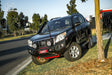 Experience enhanced visibility with the European E-Mark certified LED lighting system, including daytime running lights, fog lamps, and indicators. The bar also features mounting points for additional lights and an aerial, while a number plate flip is included for those utilizing a winch. Finished with a sleek matte black power coating, the bull bar exudes a rugged elegance.