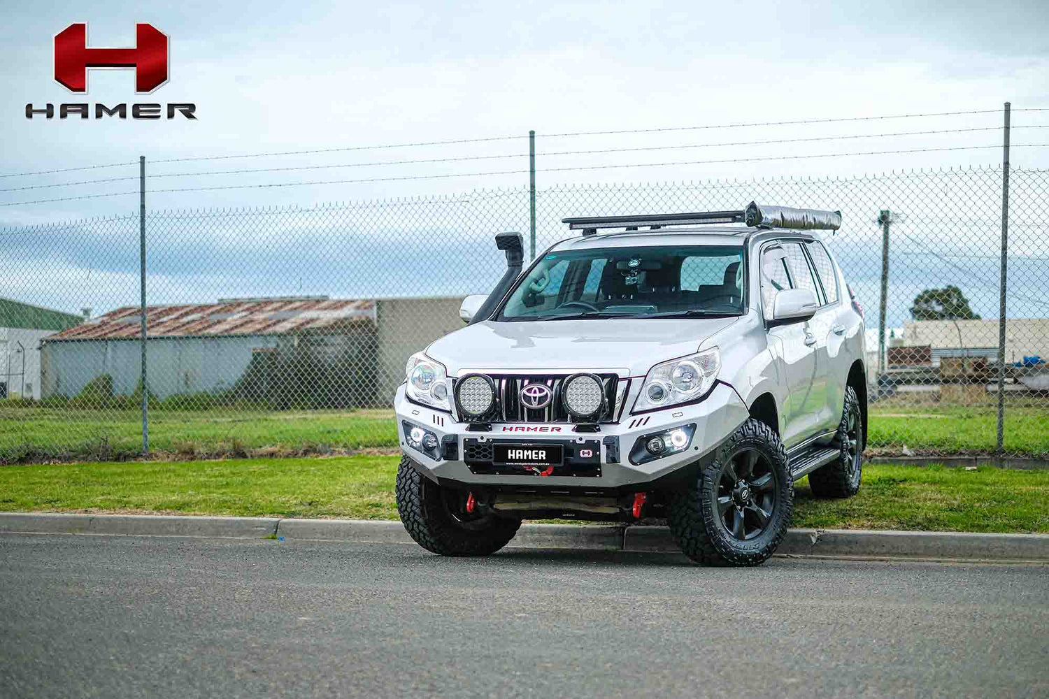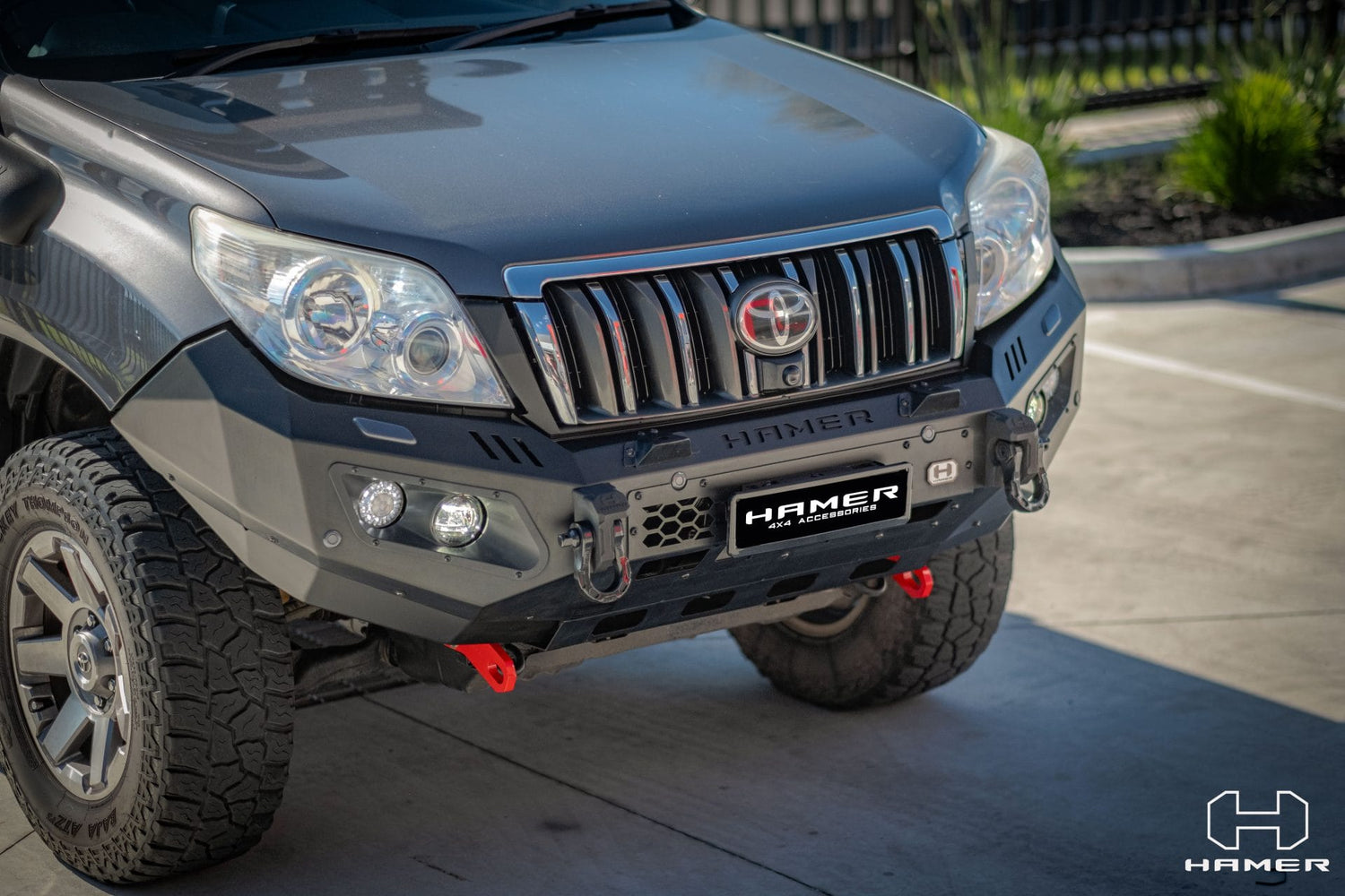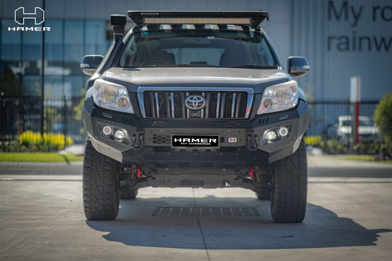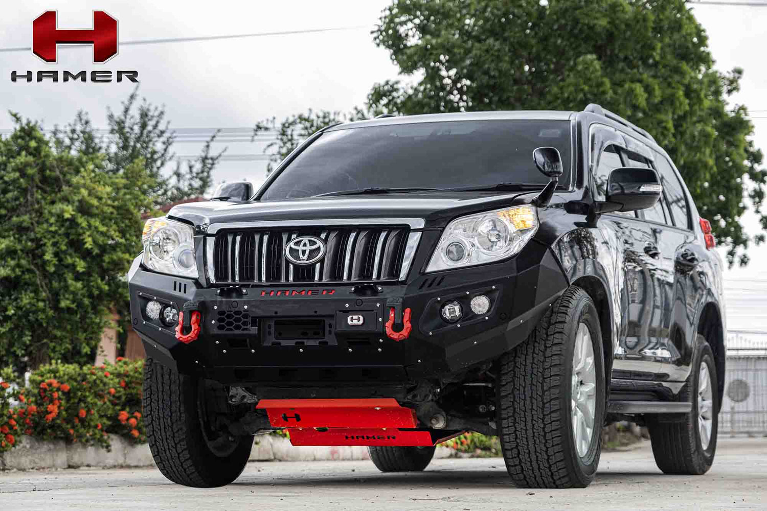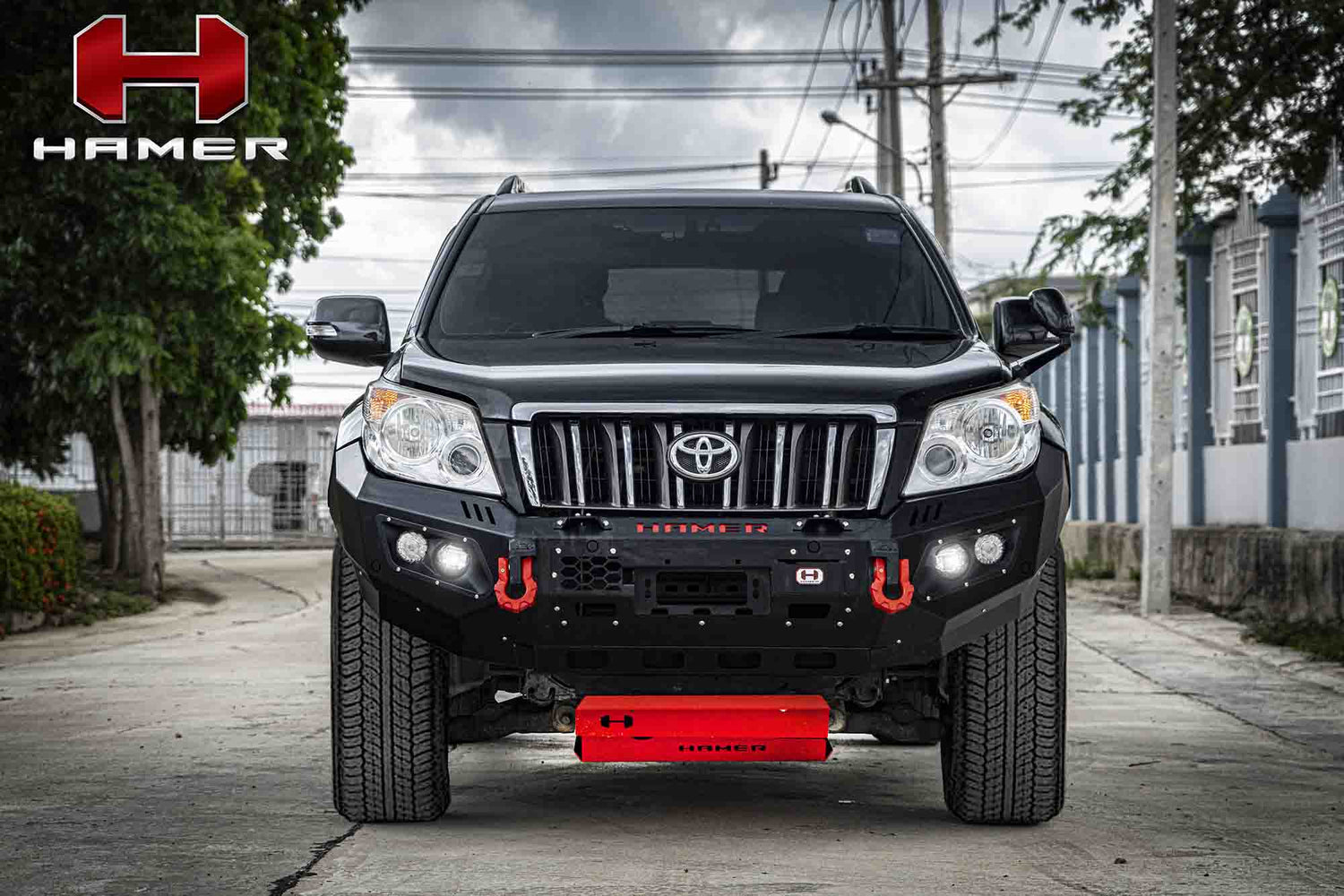 Introducing the Hamer King Series Bull Bar, a robust and stylish bumper replacement specifically tailored to fit the Toyota Landcruiser Prado 150 Series (2009 – 2013). Engineered to enhance your vehicle’s appearance, this bull bar offers unparalleled protection for the front during unforeseen events, ensuring you embark on every journey with confidence.