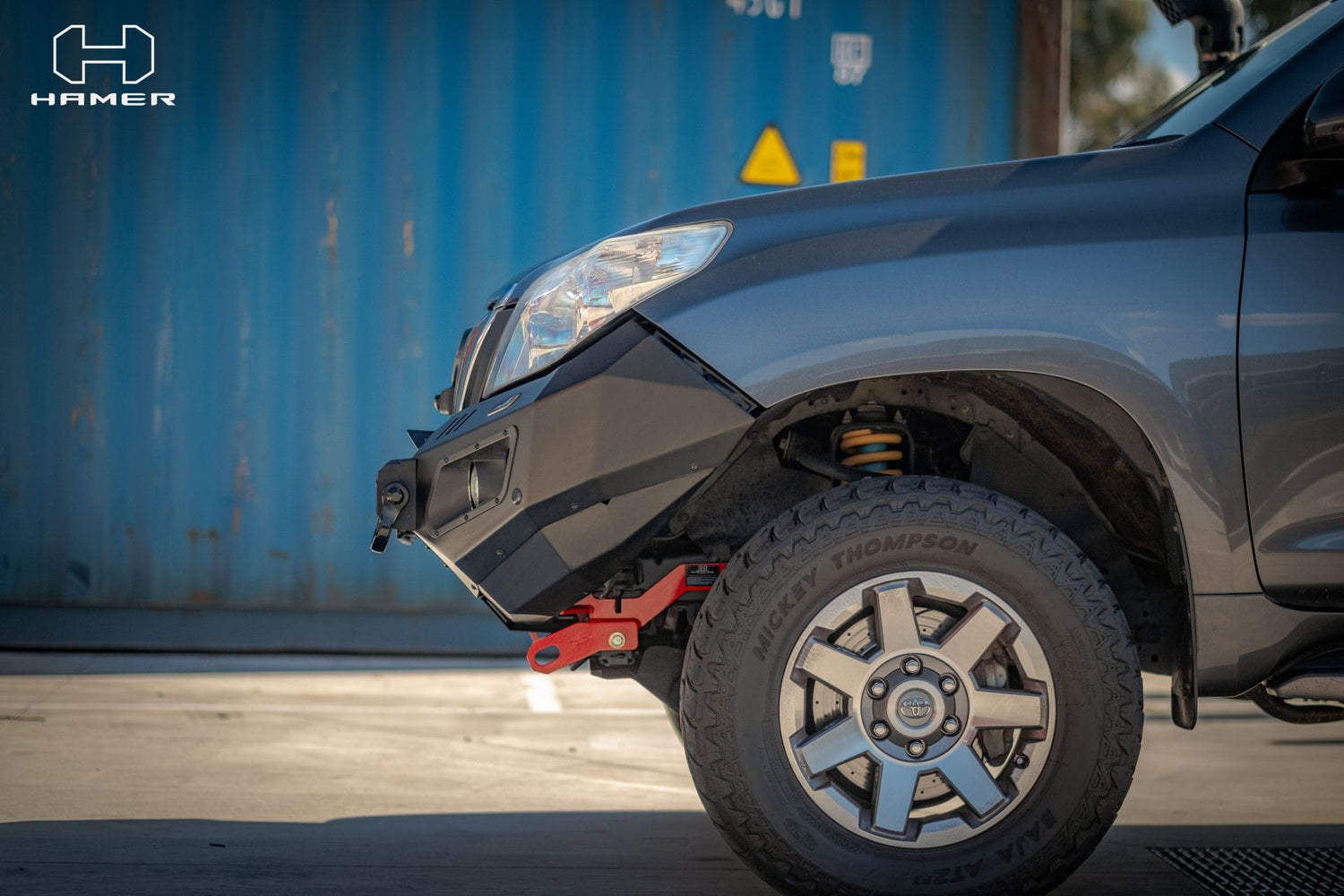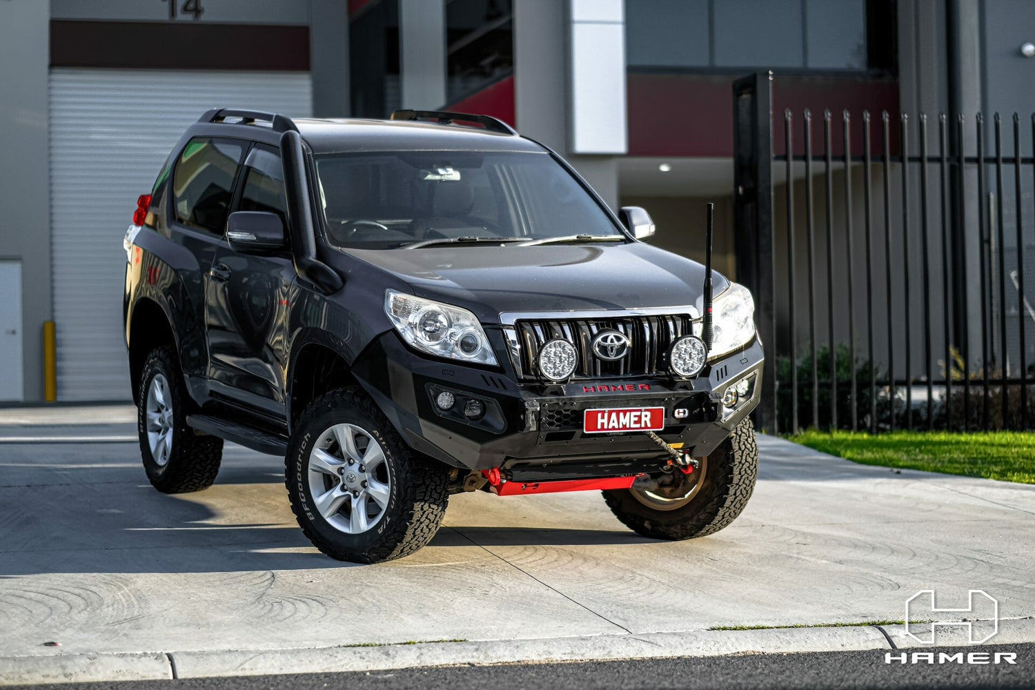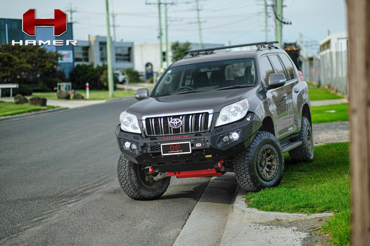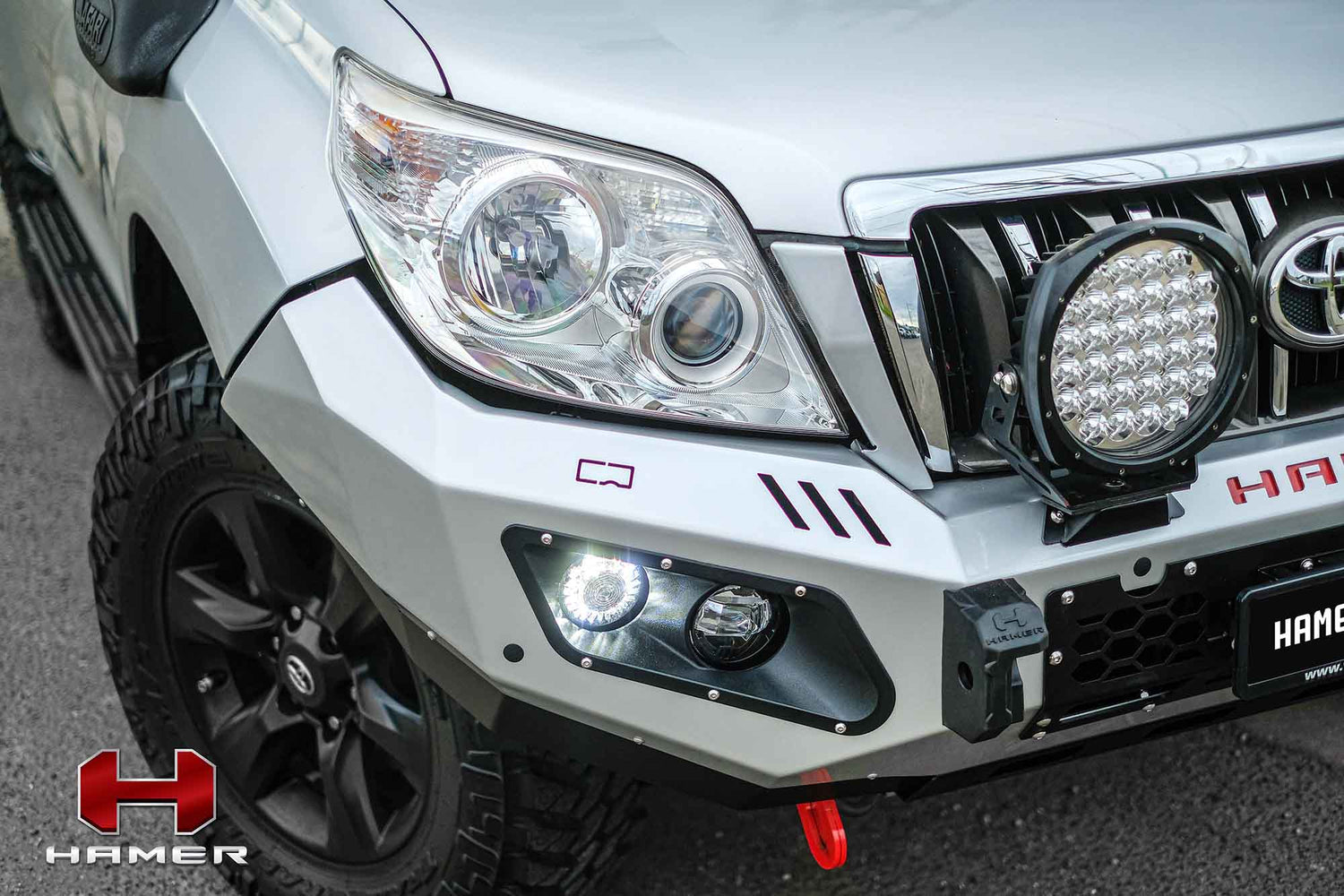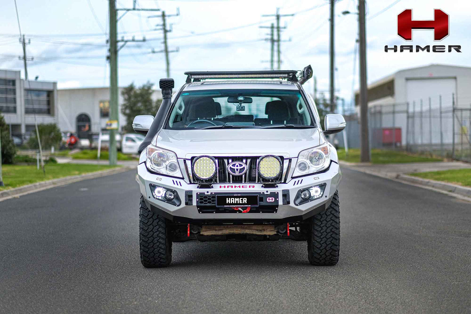 Introducing the Hamer King Series Bull Bar, a robust and stylish bumper replacement specifically tailored to fit the Toyota Landcruiser Prado 150 Series (2009 – 2013). Engineered to enhance your vehicle’s appearance, this bull bar offers unparalleled protection for the front during unforeseen events, ensuring you embark on every journey with confidence.