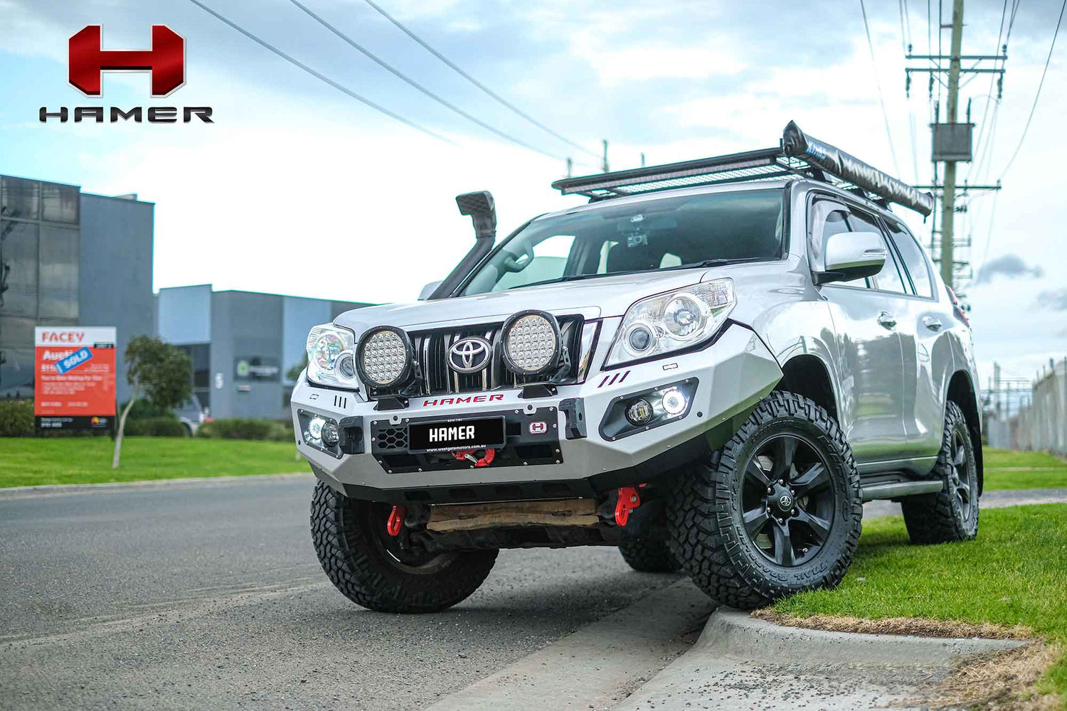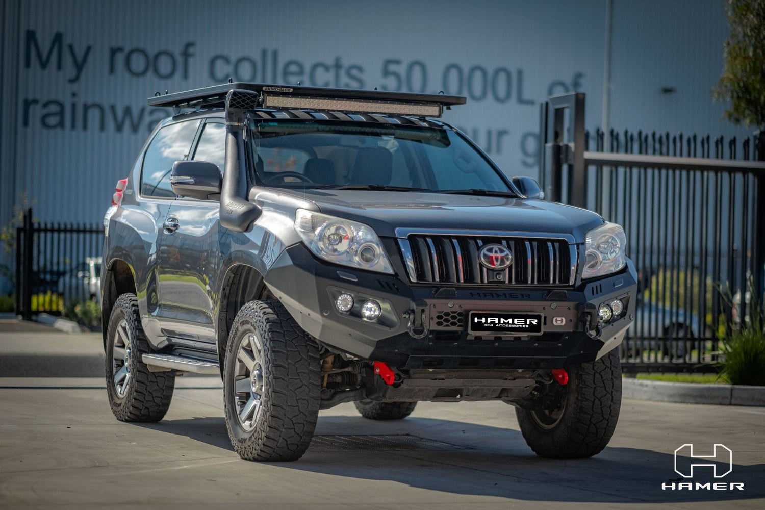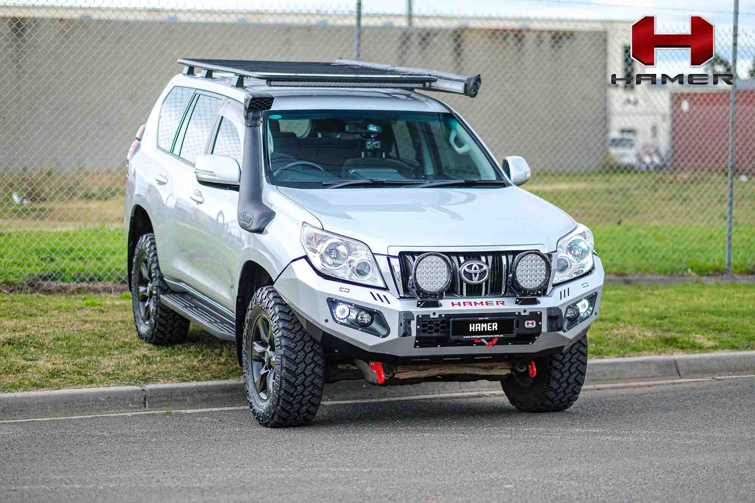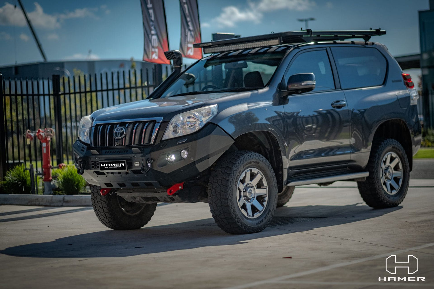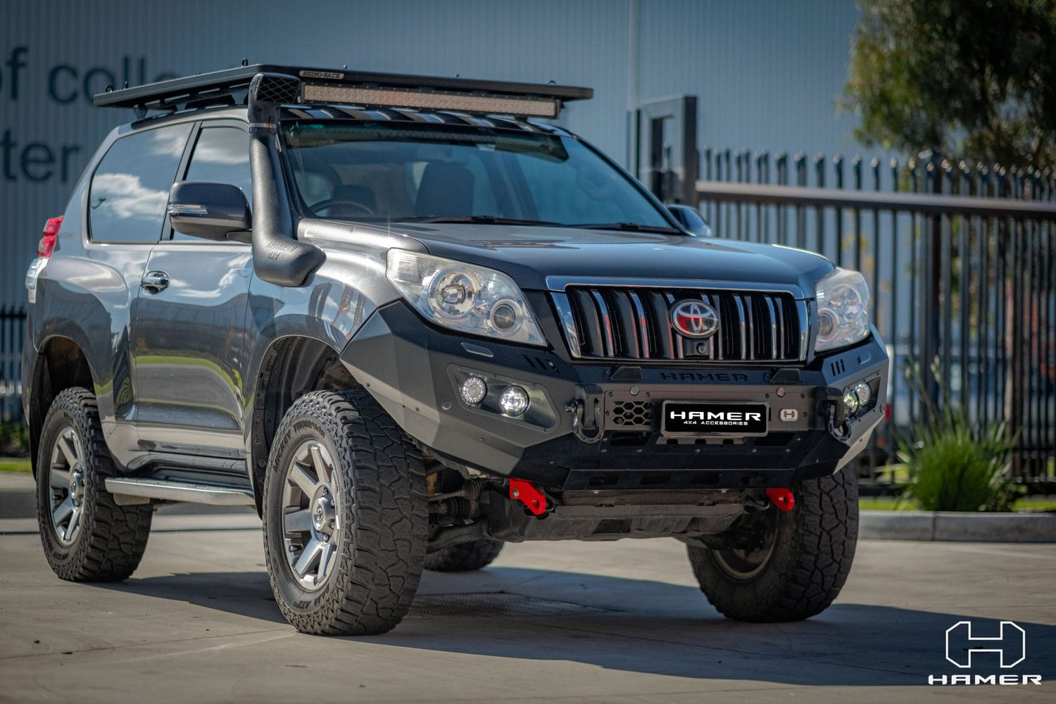 Introducing the Hamer King Series Bull Bar, a robust and stylish bumper replacement specifically tailored to fit the Toyota Landcruiser Prado 150 Series (2009 – 2013). Engineered to enhance your vehicle’s appearance, this bull bar offers unparalleled protection for the front during unforeseen events, ensuring you embark on every journey with confidence.