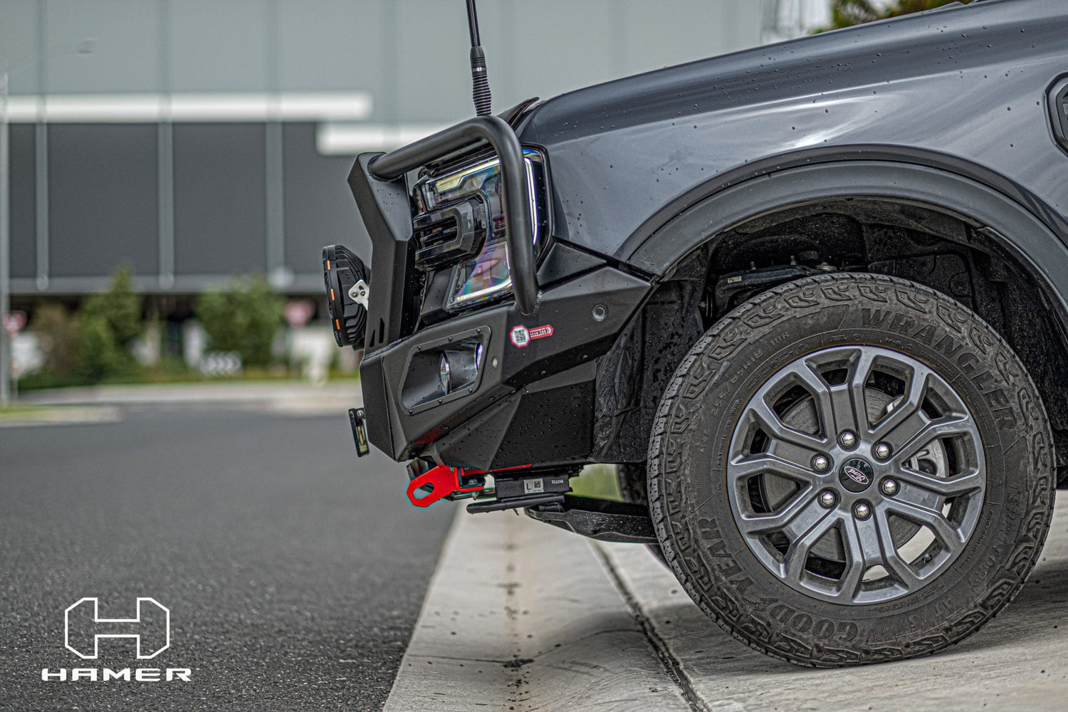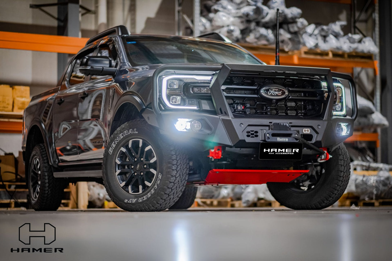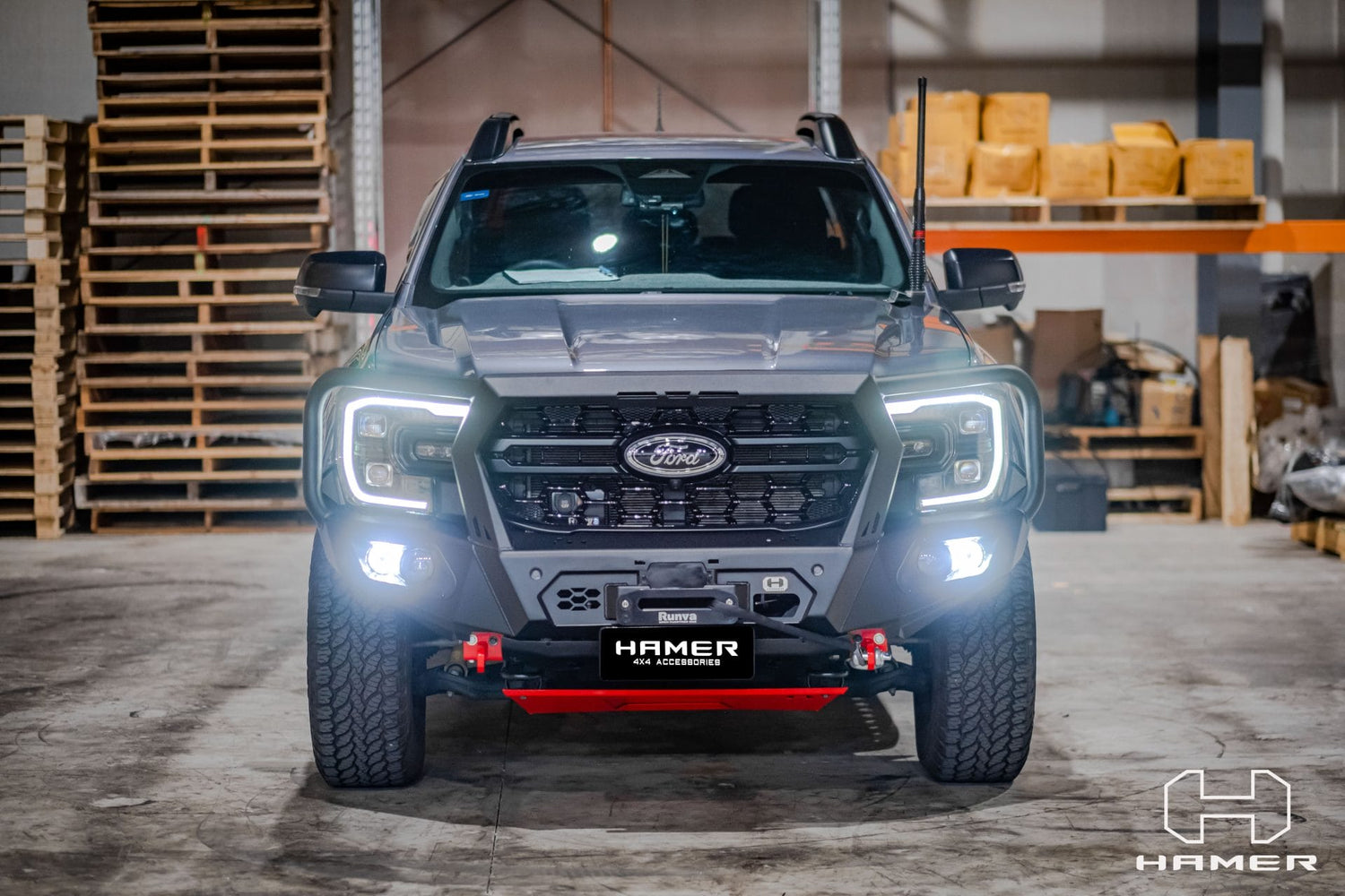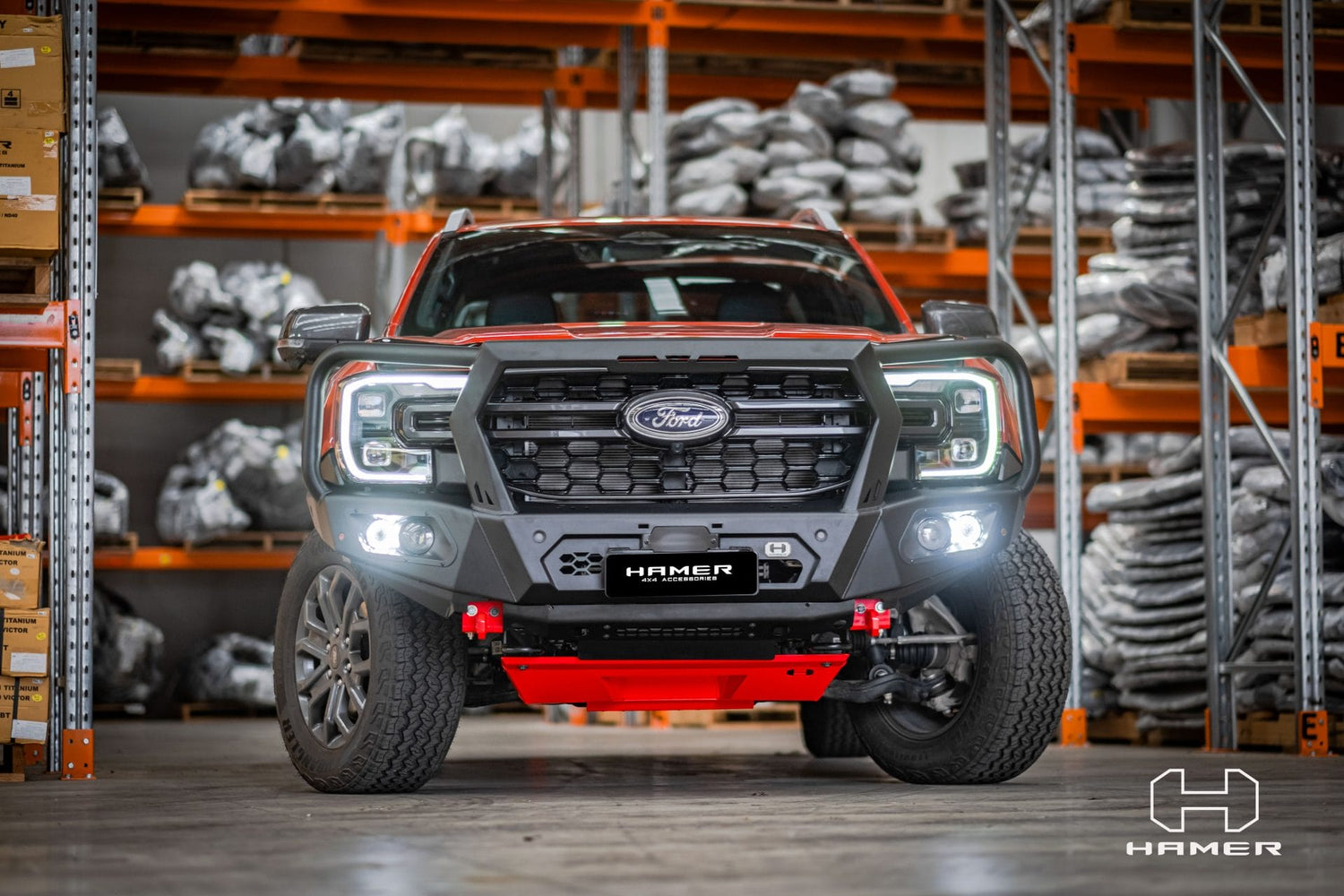Introducing the Hamer King Series Bull Bar for Ford Ranger (2022 – Present). This bumper replacement bull bar is a testament to Hamer’s dedication to excellence in design and craftsmanship. Its sleek and integrated design not only adds a rugged look to your vehicle but also ensures optimum front-end protection during unforeseen events.