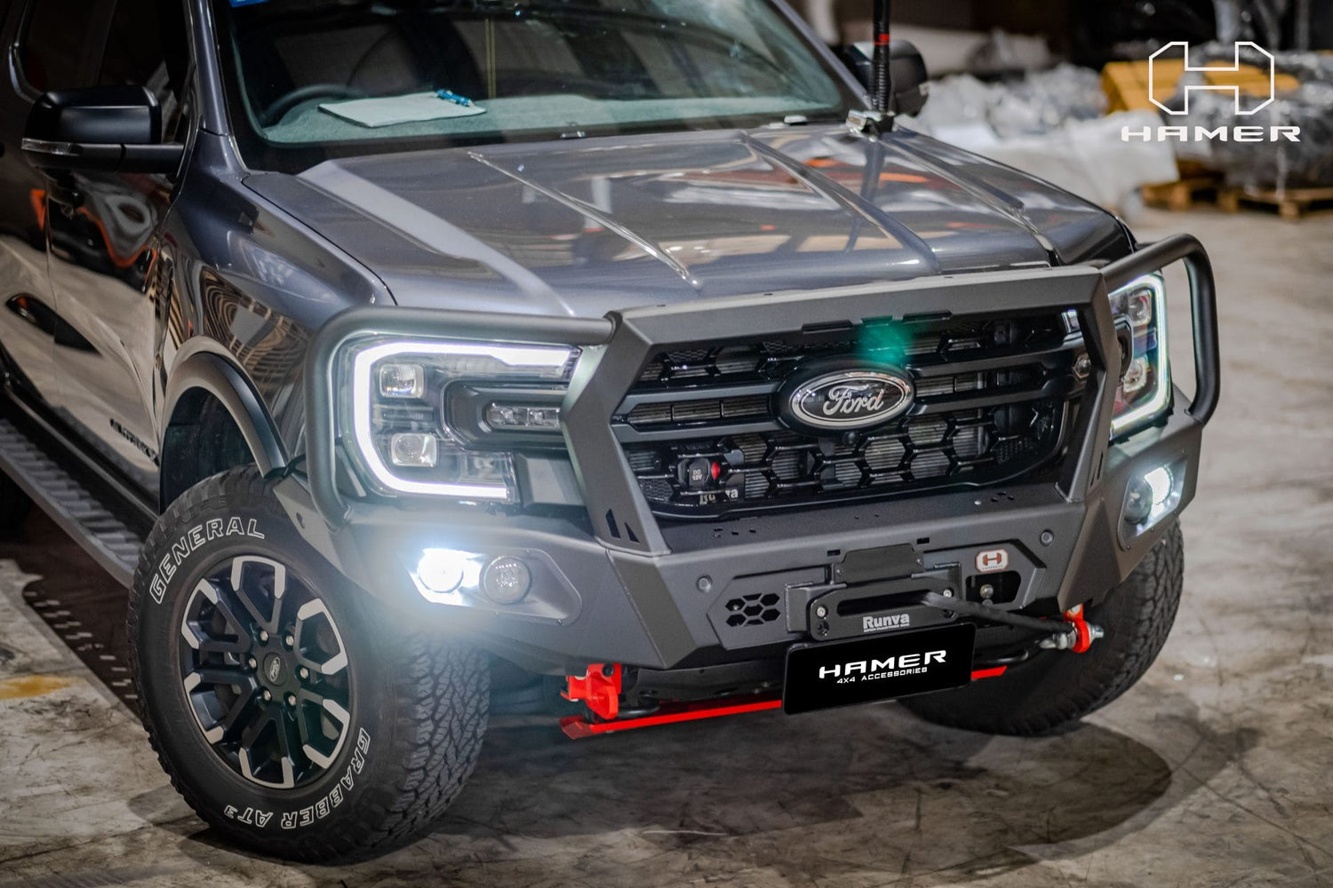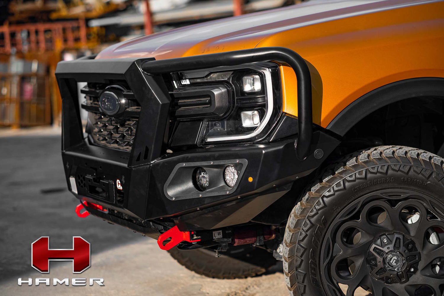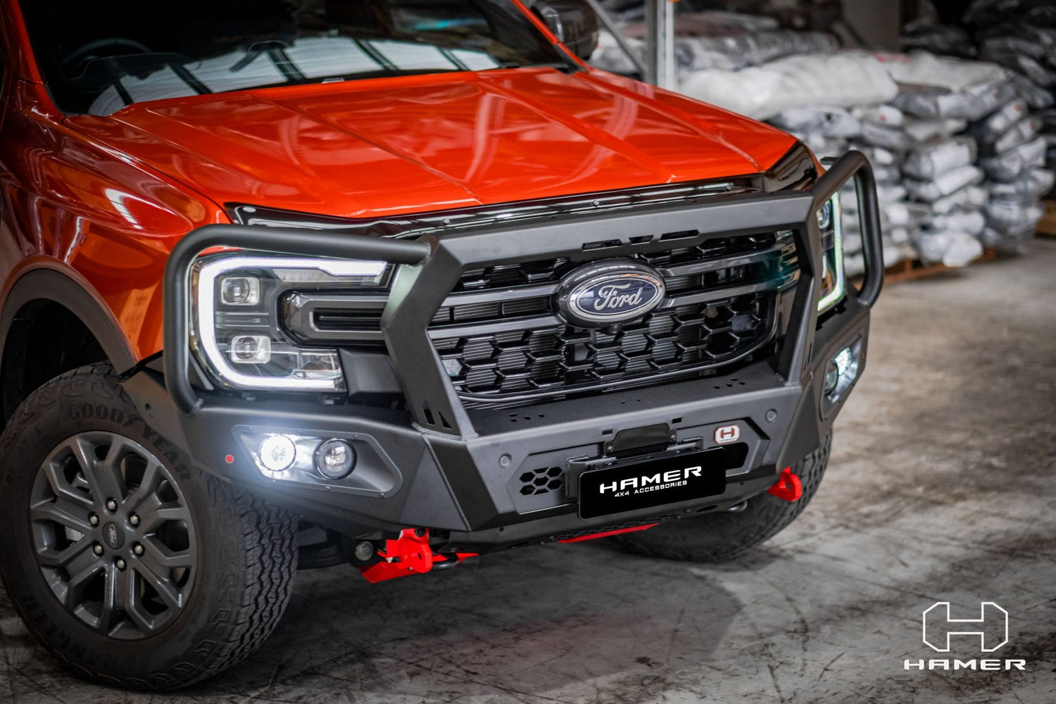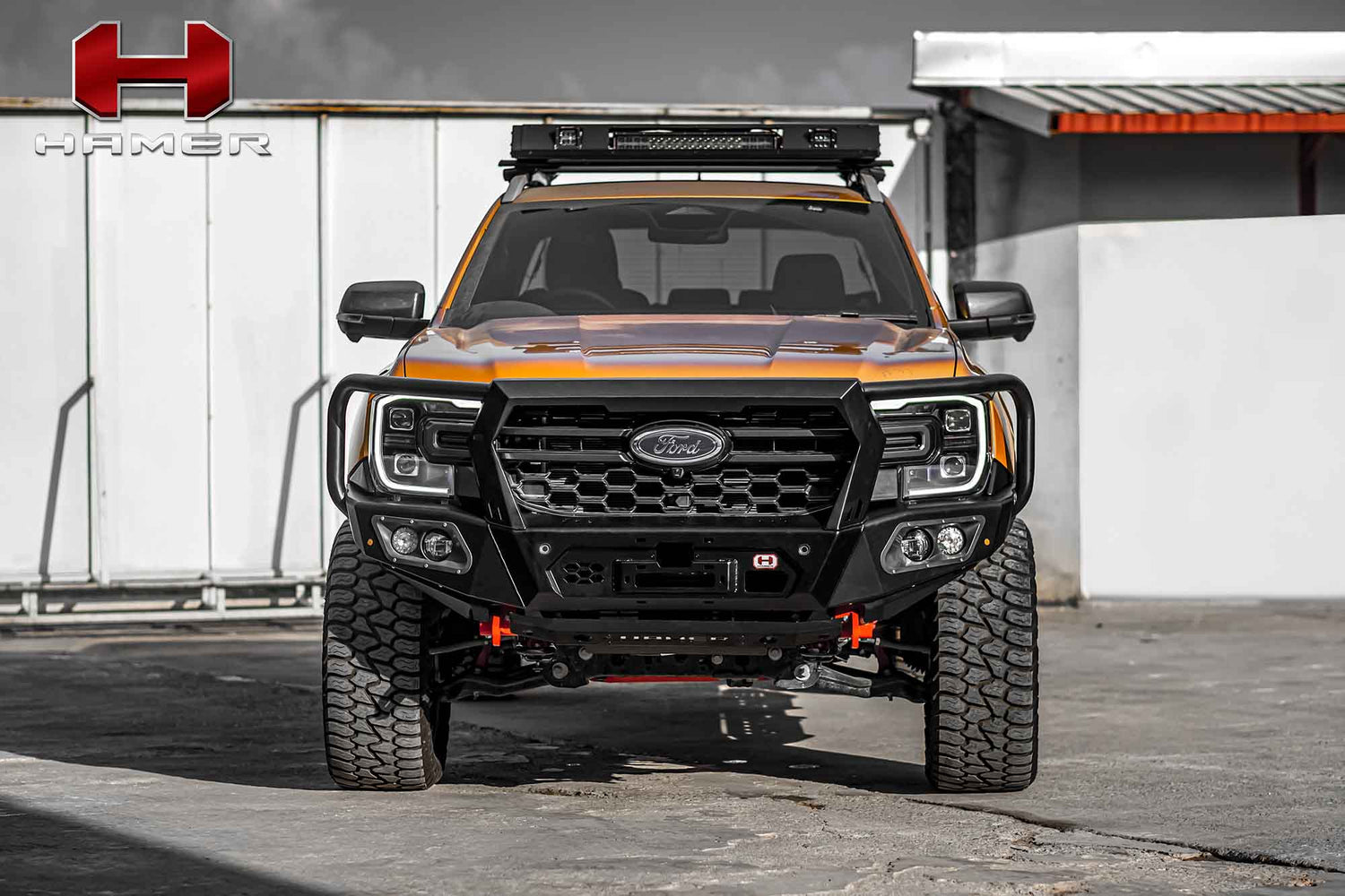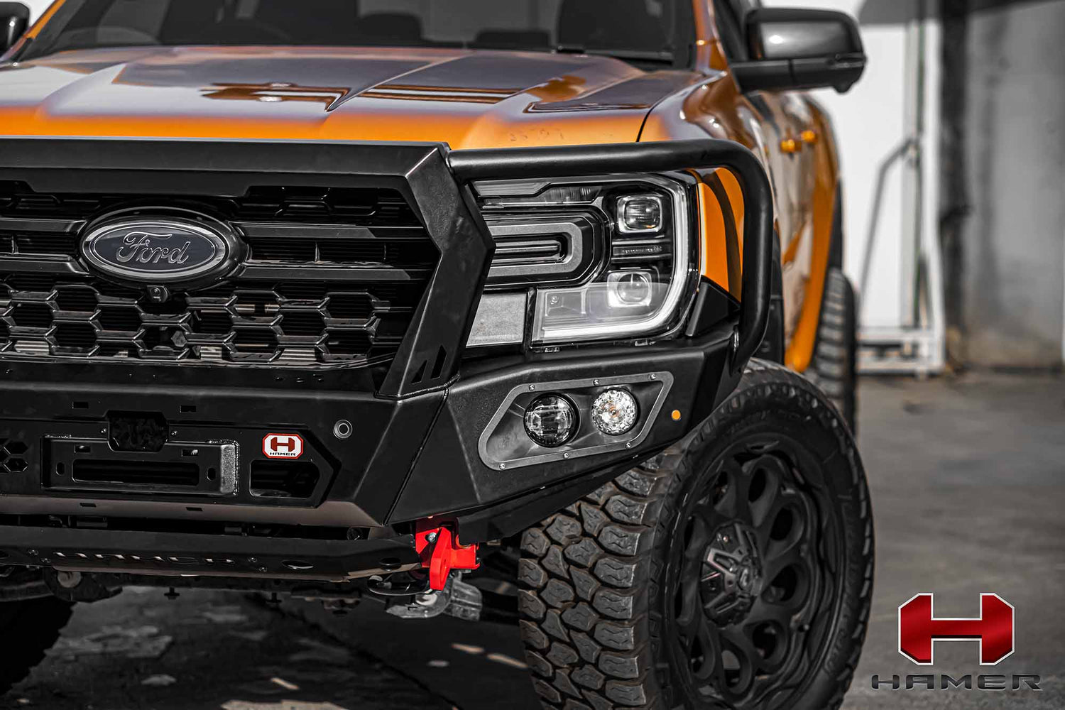Introducing the Hamer King Series Bull Bar for Ford Ranger (2022 – Present). This bumper replacement bull bar is a testament to Hamer’s dedication to excellence in design and craftsmanship. Its sleek and integrated design not only adds a rugged look to your vehicle but also ensures optimum front-end protection during unforeseen events.