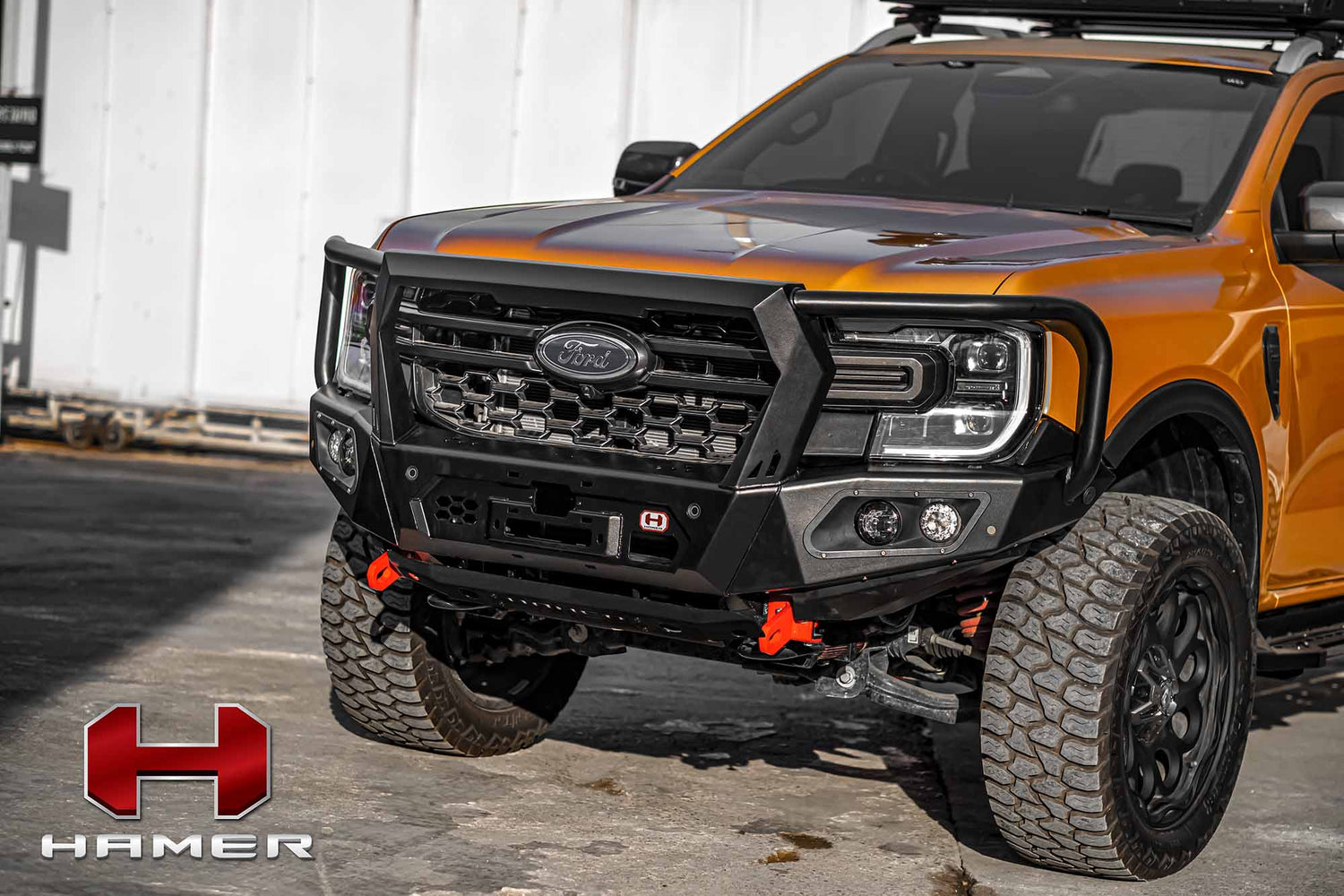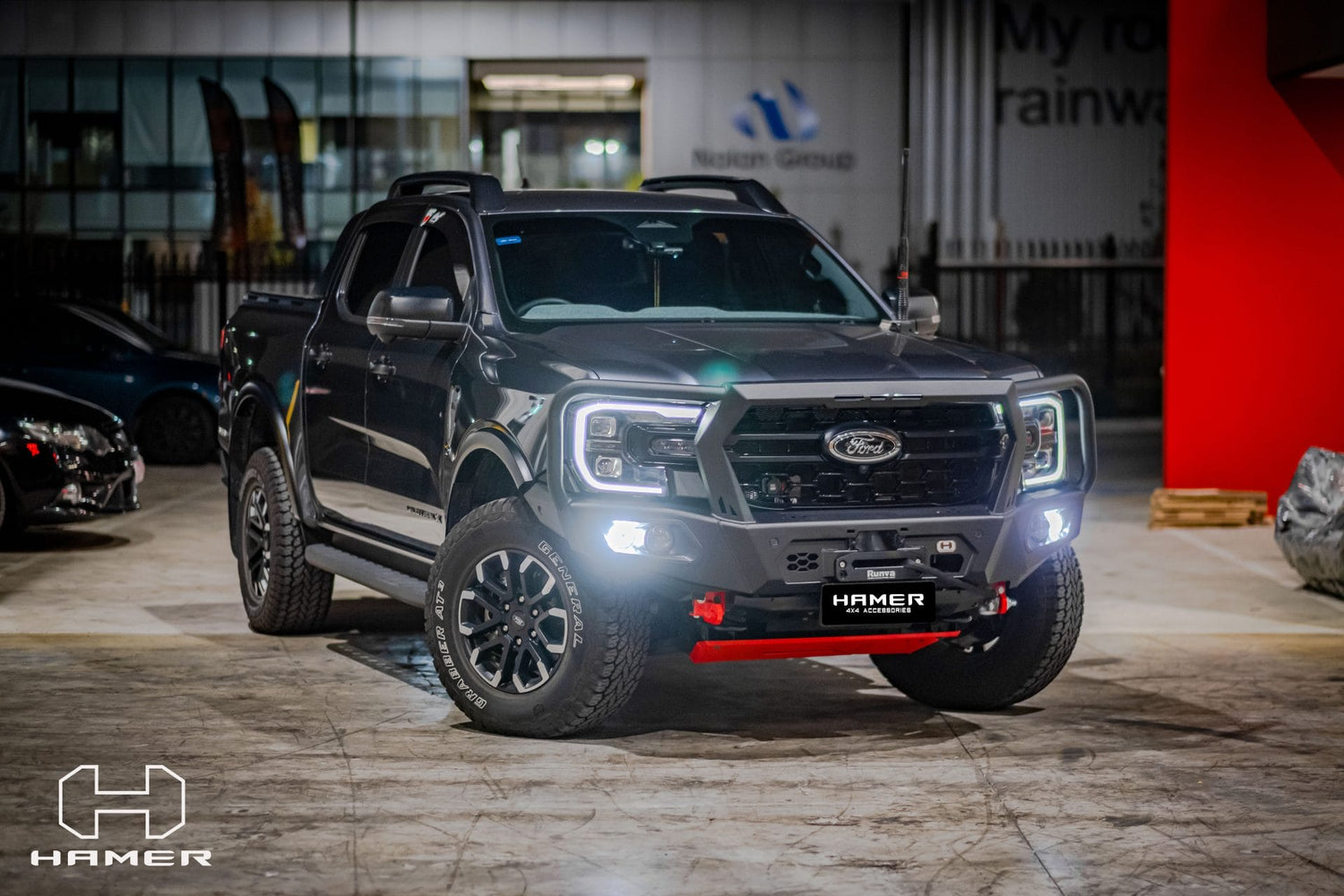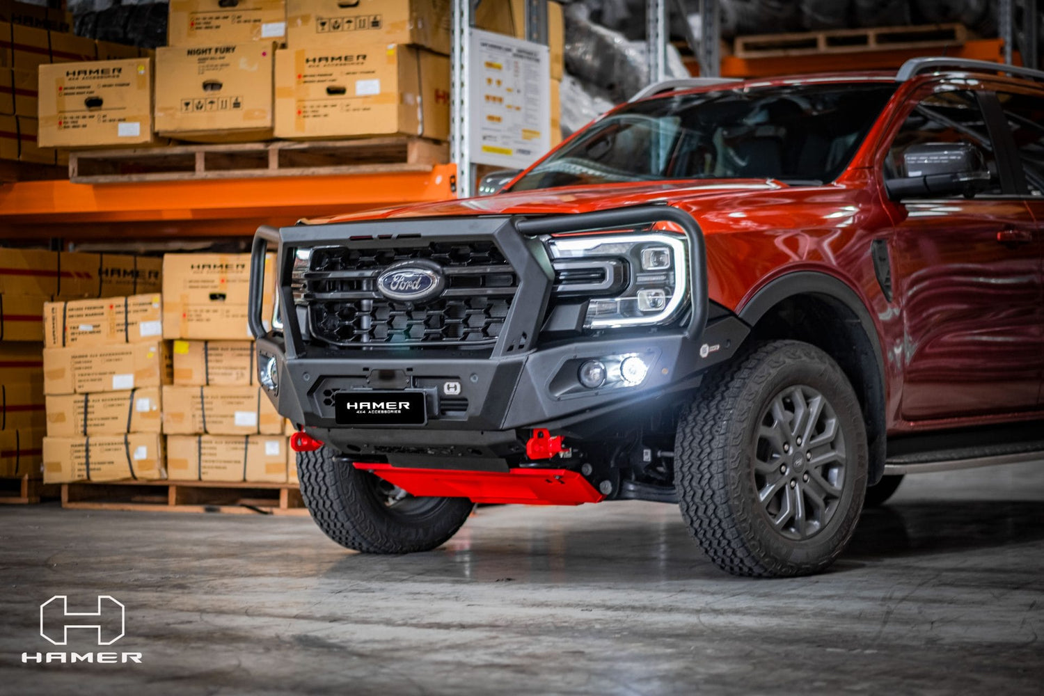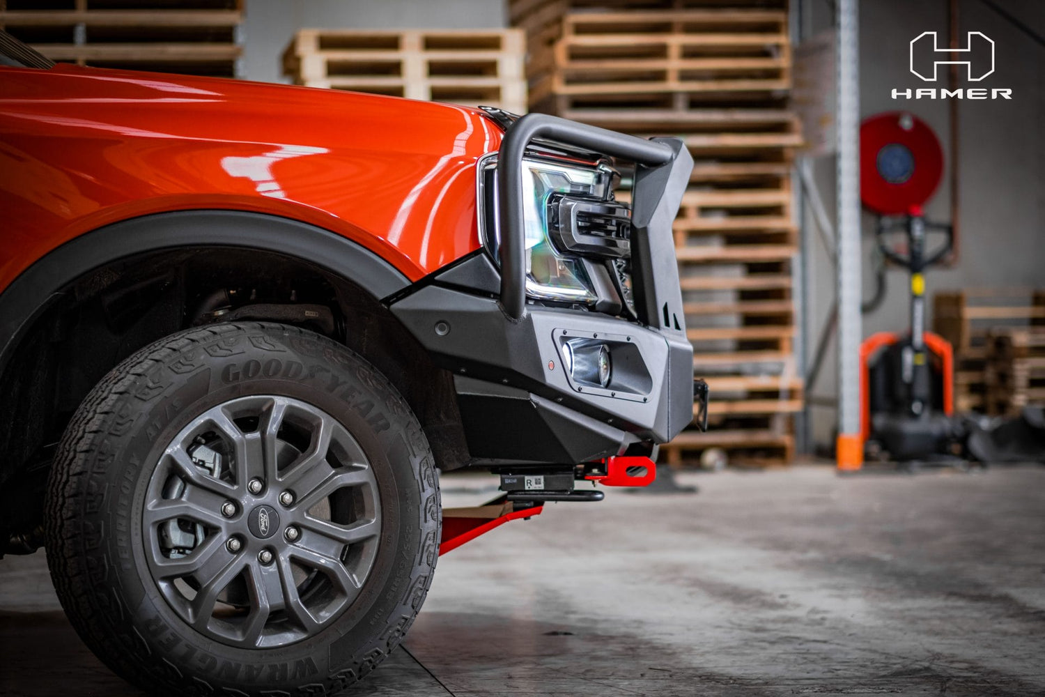 Introducing the Hamer King Series Bull Bar for Ford Ranger (2022 – Present). This bumper replacement bull bar is a testament to Hamer’s dedication to excellence in design and craftsmanship. Its sleek and integrated design not only adds a rugged look to your vehicle but also ensures optimum front-end protection during unforeseen events.