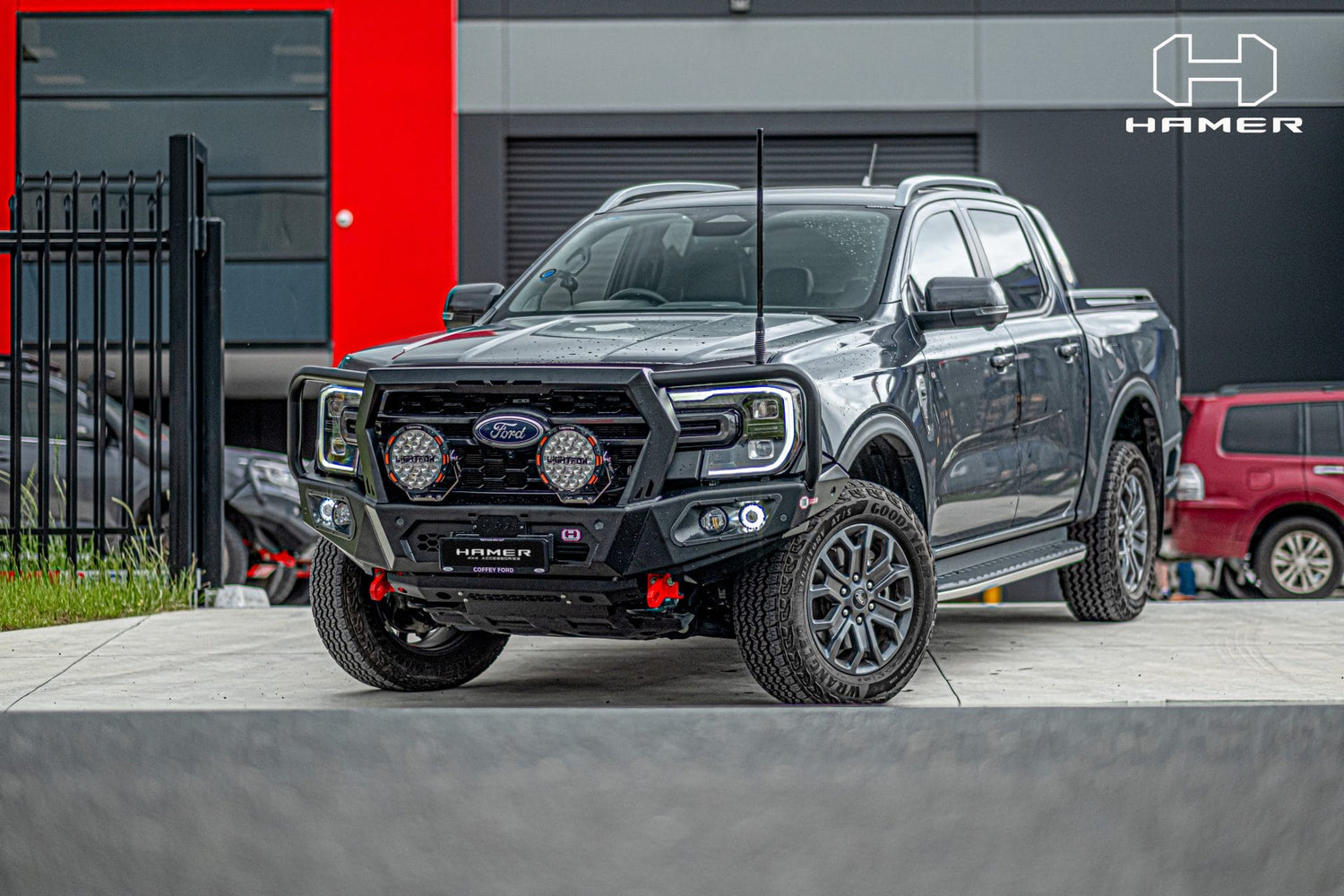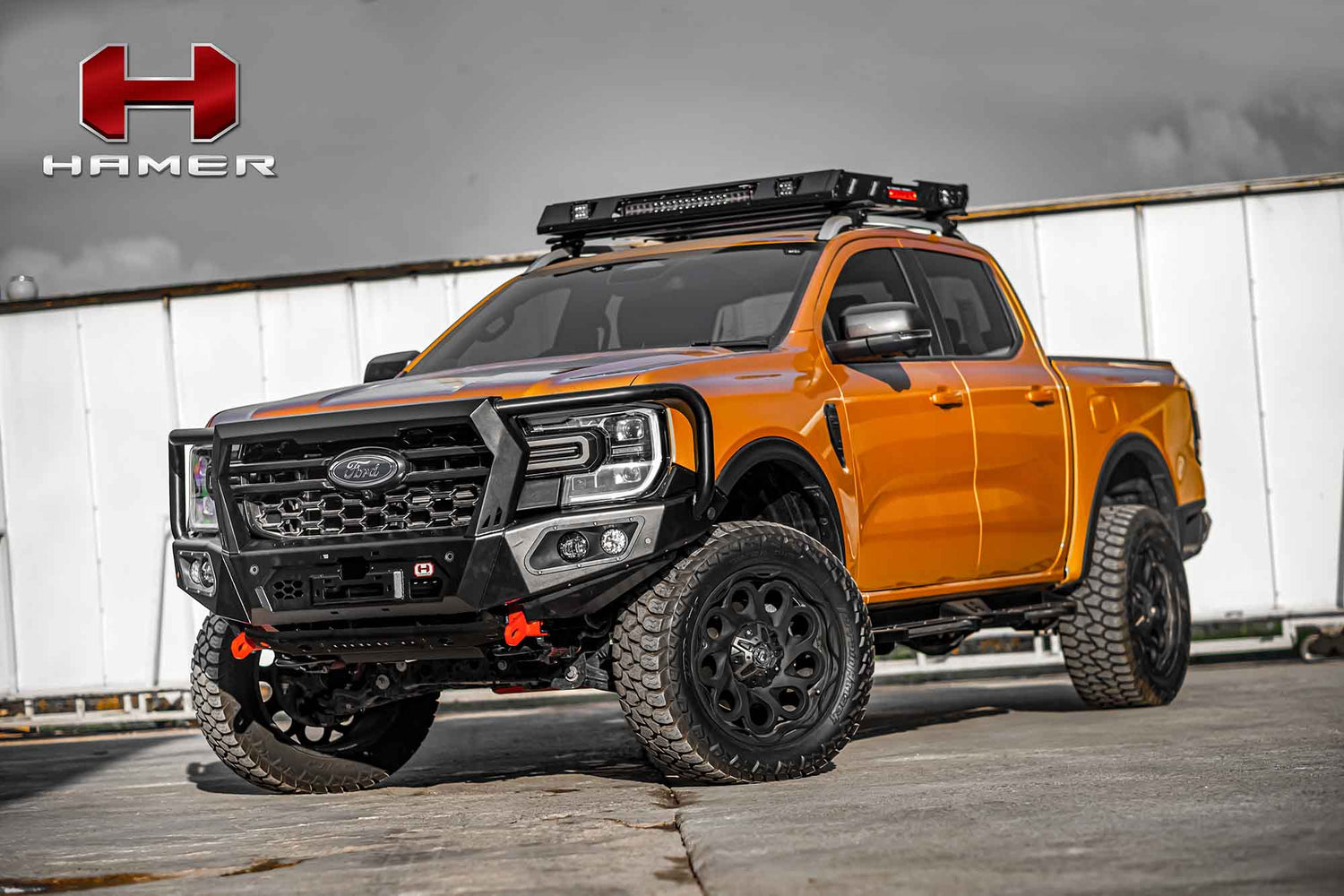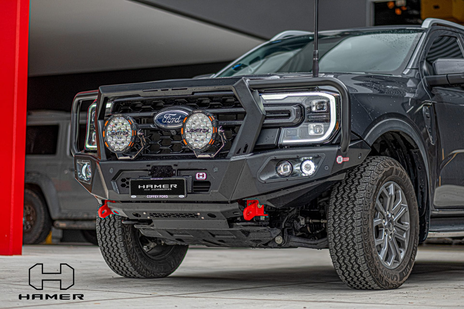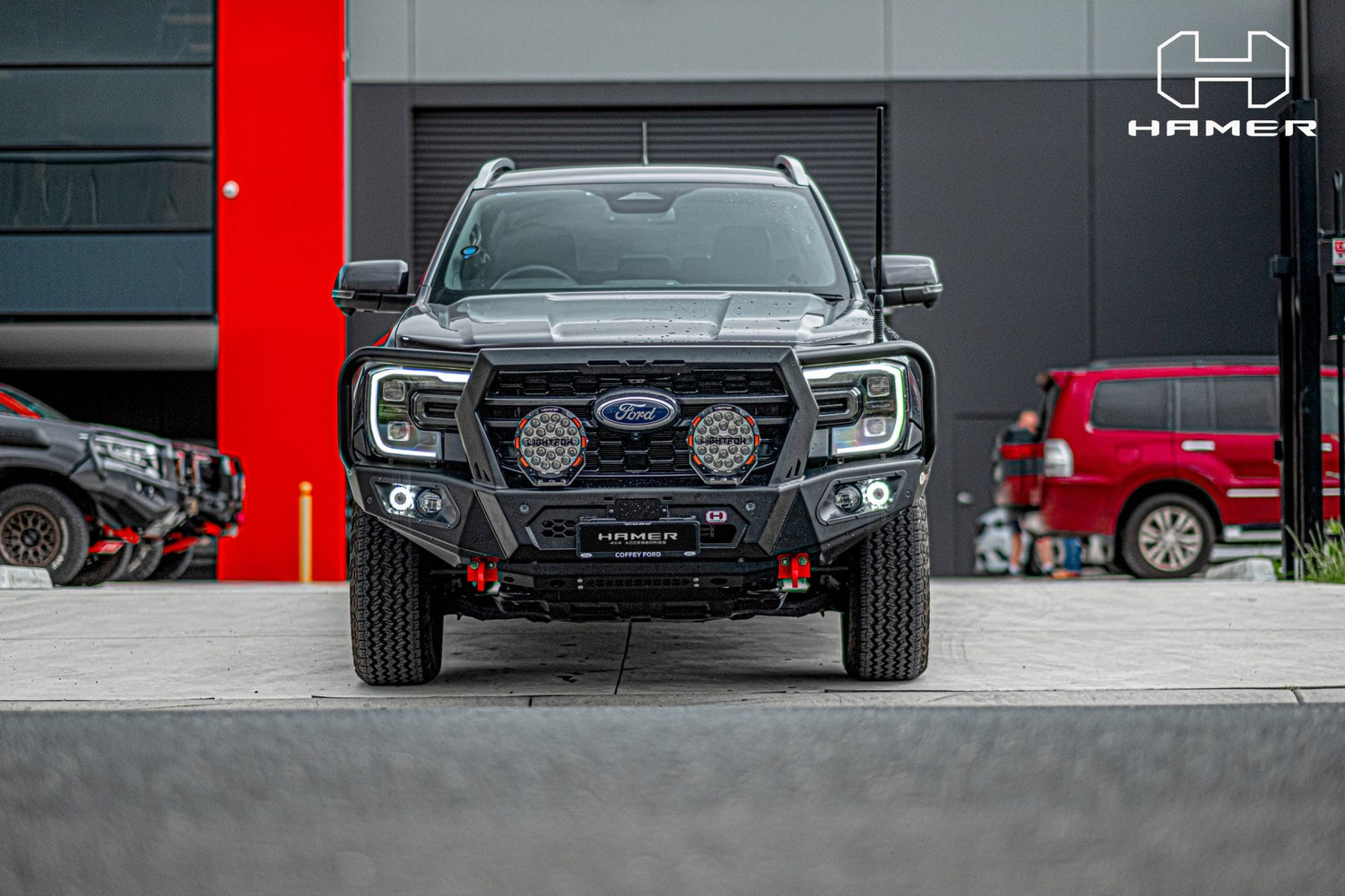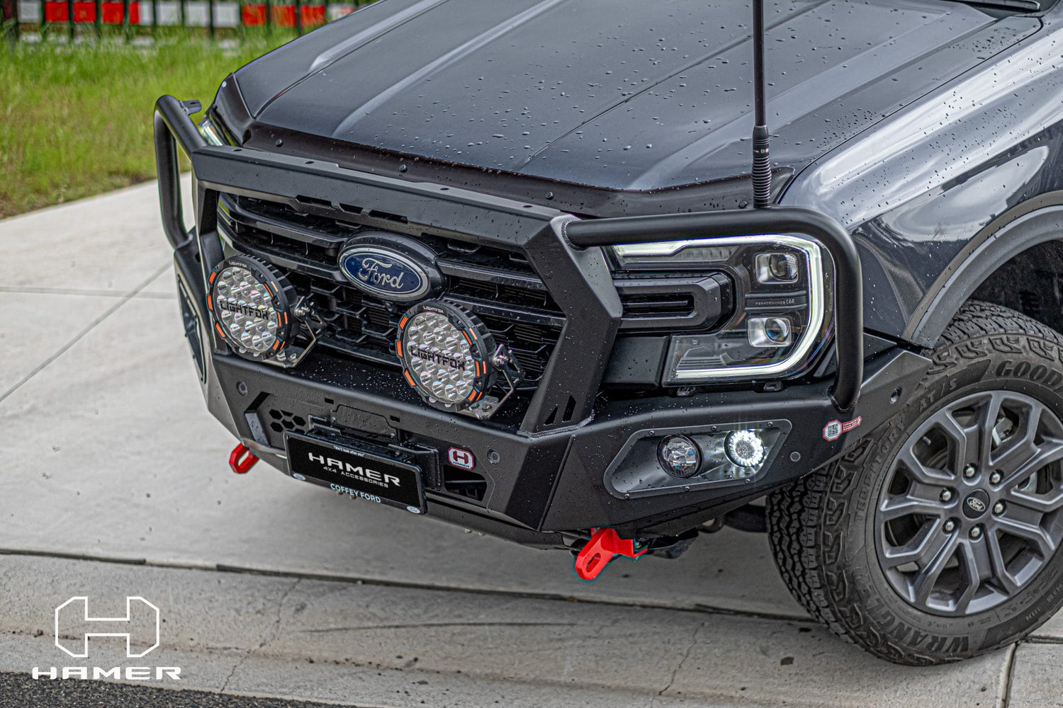 Introducing the Hamer King Series Bull Bar for Ford Ranger (2022 – Present). This bumper replacement bull bar is a testament to Hamer’s dedication to excellence in design and craftsmanship. Its sleek and integrated design not only adds a rugged look to your vehicle but also ensures optimum front-end protection during unforeseen events.