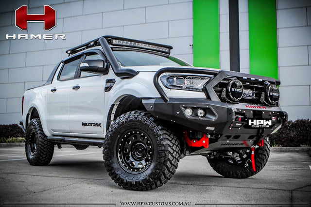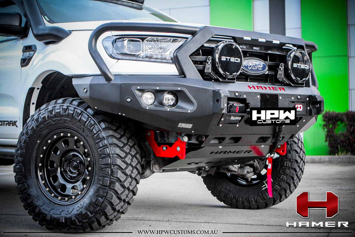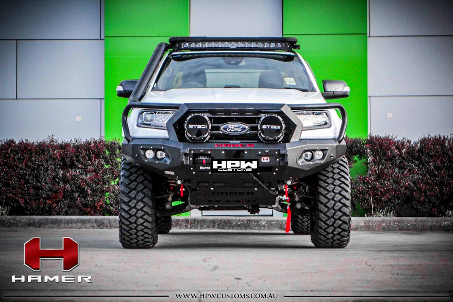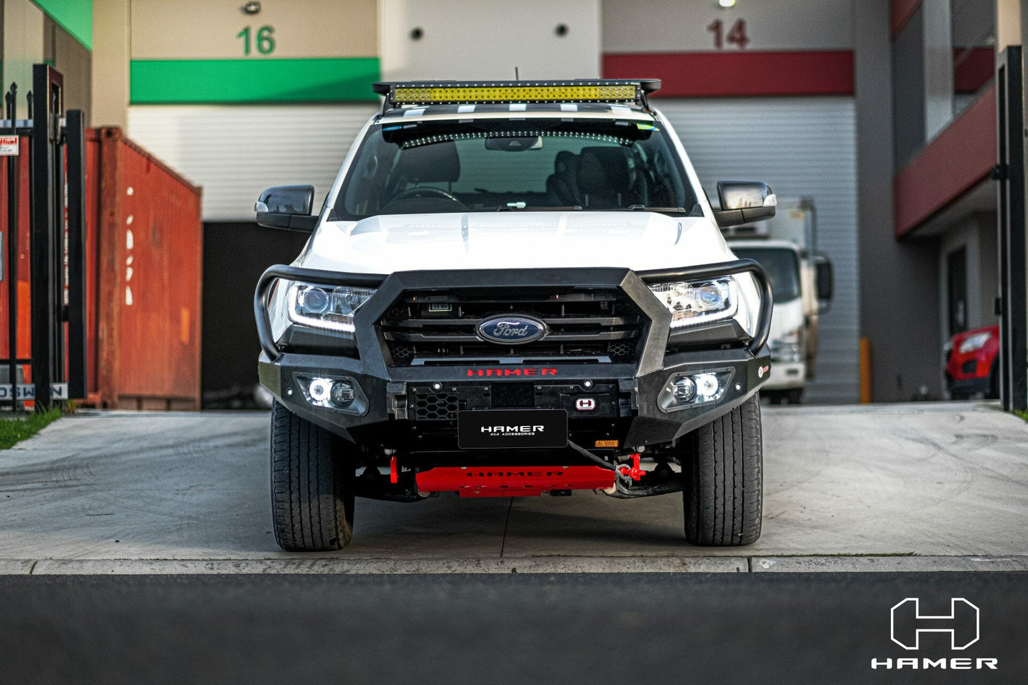 Hamer King series plus bull bar is a bumper replacement bull bar that has been specifically designed to fit Ford Ranger PX2, PX3 (2015 – 2022) Triple looped for added protection and style to your vehicle, Hamer bull bar protects the front of your vehicle during an unexpected event. Stay confident in every journey you make.
