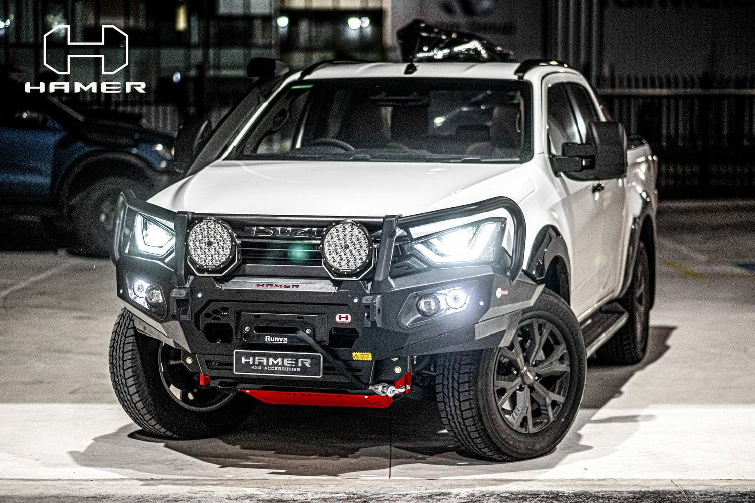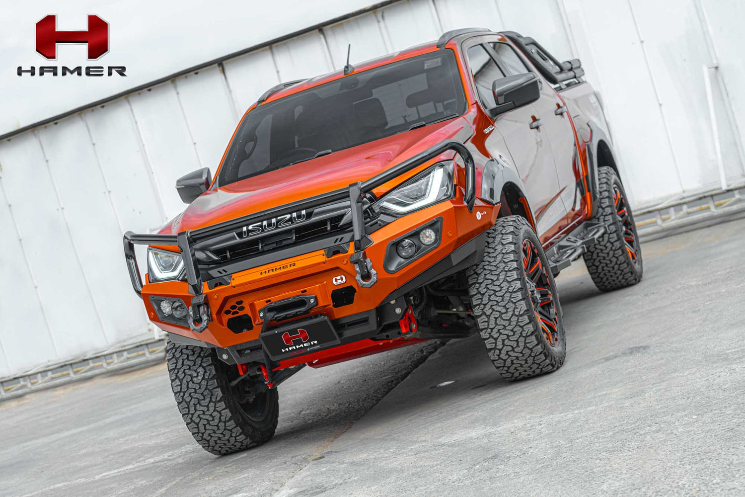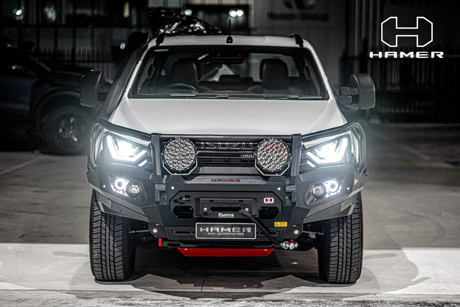 Hamer King series Plus bull bar is a bumper replacement bull bar that has been specifically designed to fit Isuzu D-Max ( 2021 – Present ). Not only adding a tough look to your vehicle, Hamer bull bar protects the front of your vehicle during an unexpected event. Stay confident in every journey you make.