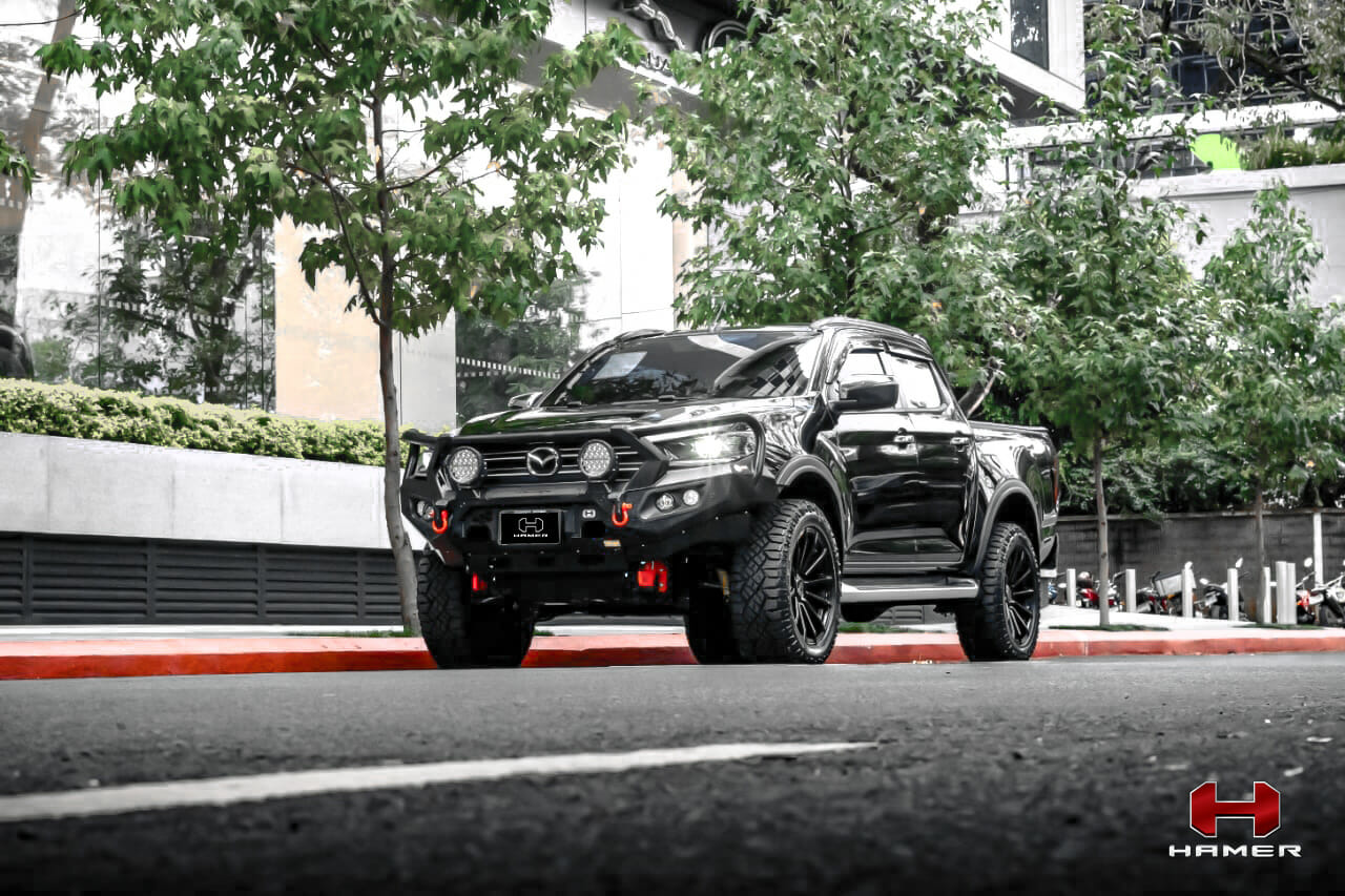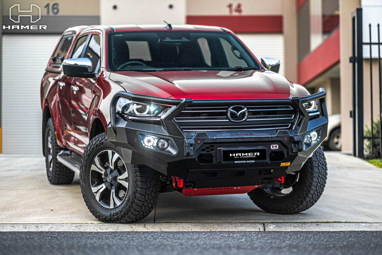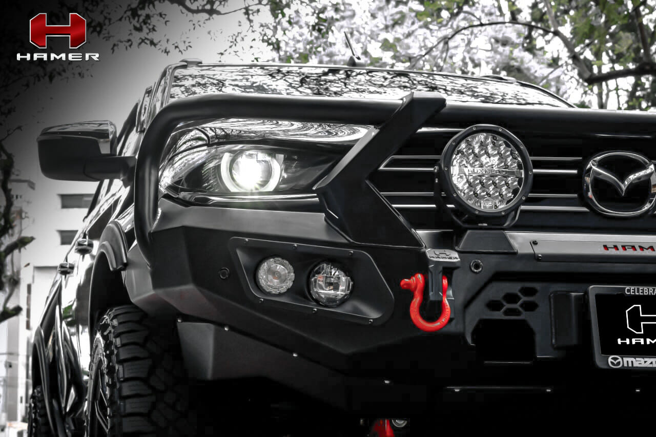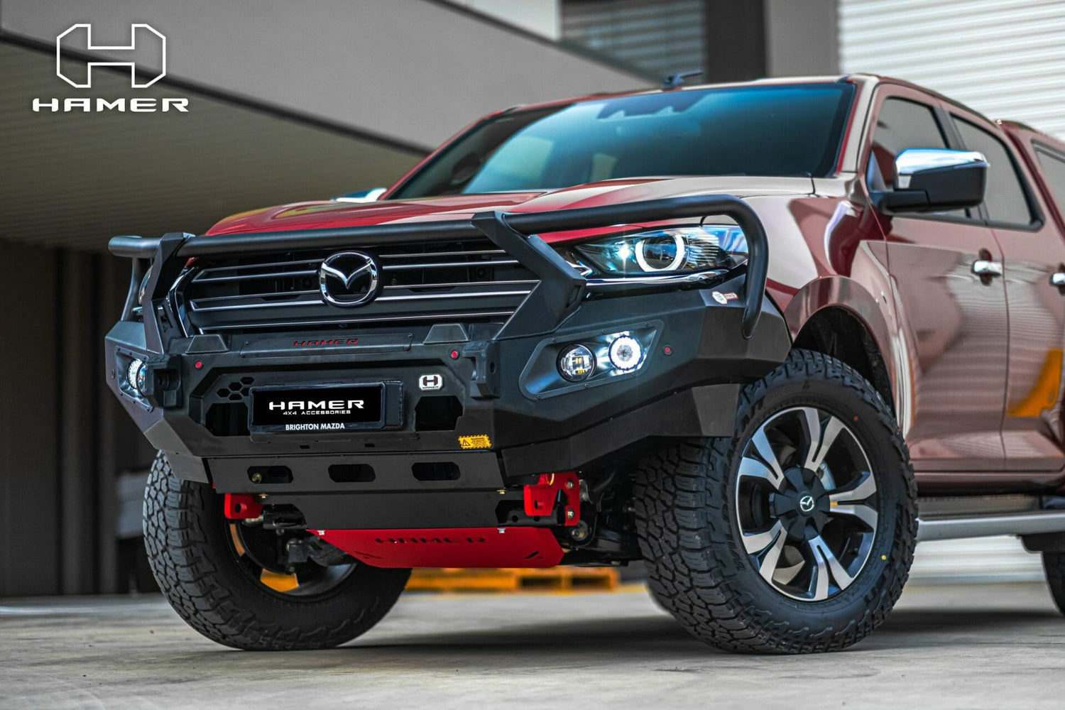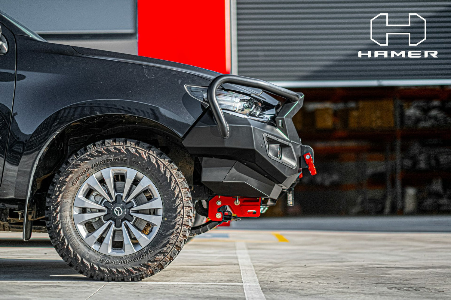 Hamer King series Plus bull bar is a bumper replacement bull bar that has been specifically designed to fit Mazda BT-50 ( 2021 – Present ). Not only adding a tough look to your vehicle, Hamer bull bar protects the front of your vehicle during an unexpected event. Stay confident in every journey you make.