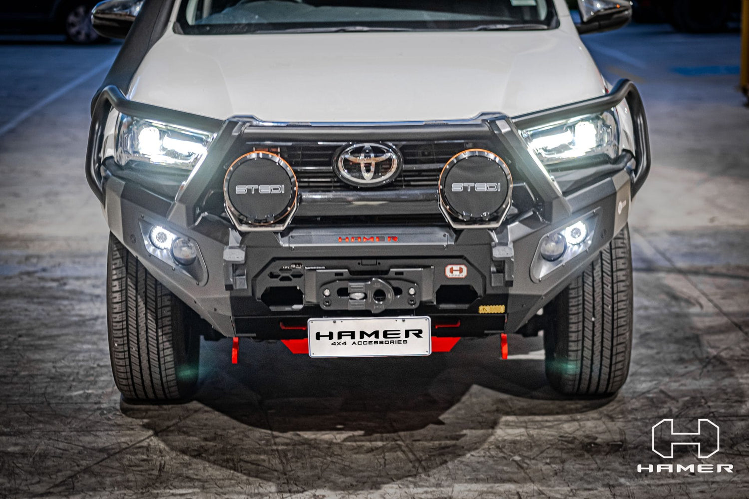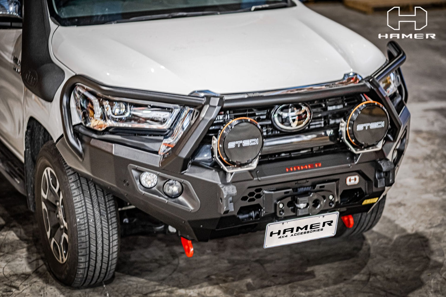 Hamer King series plus bull bar is a bumper replacement bull bar that has been specifically designed to fit Toyota Hilux (2020 – Present ) Triple looped for added protection and style to your vehicle, Hamer bull bar protects the front of your vehicle during an unexpected event. Stay confident in every journey you make.