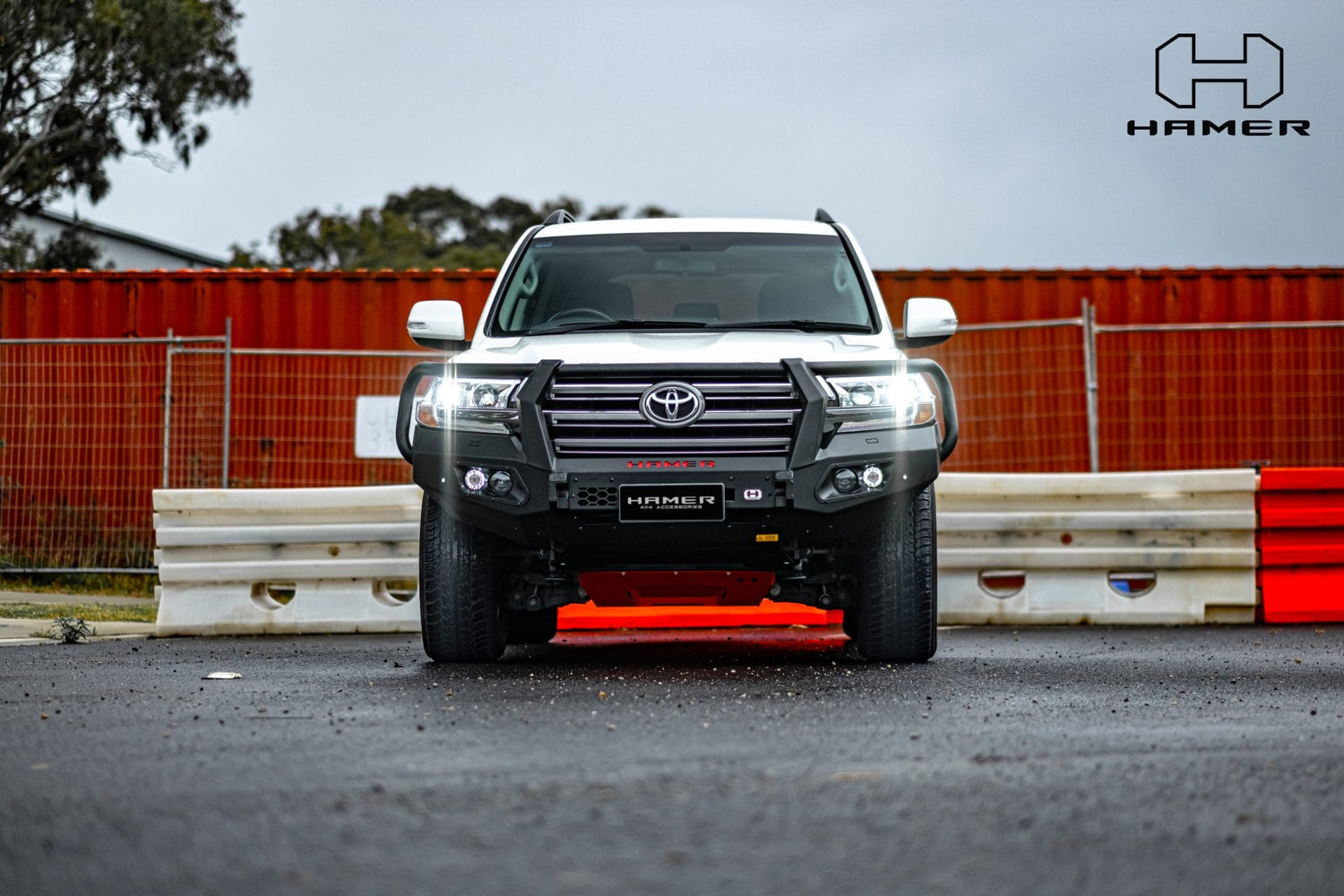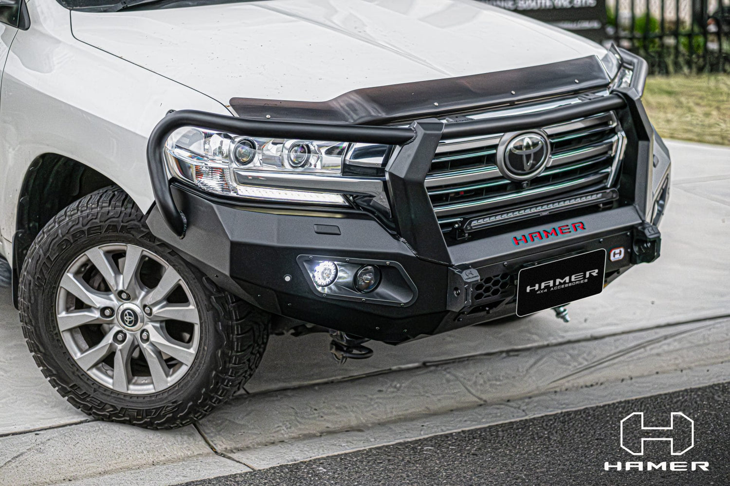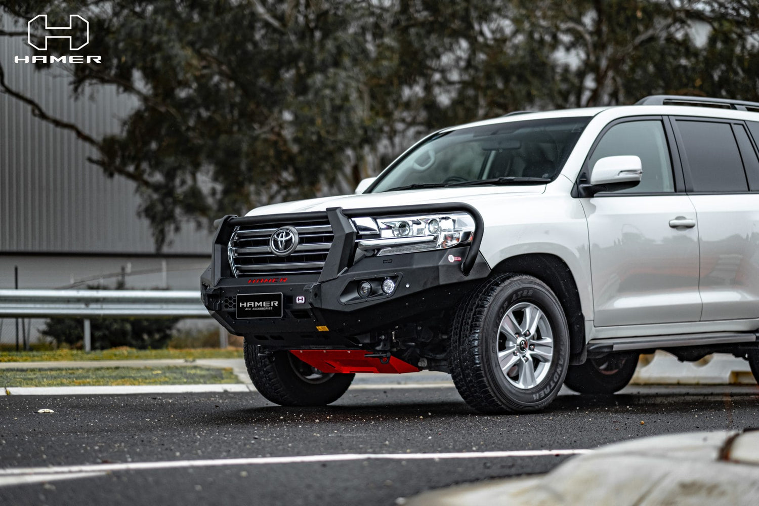 Introducing the Hamer King Series Plus Bull Bar, meticulously crafted to seamlessly enhance your Toyota Landcruiser 200 Series (2015 – 2021) while providing unparalleled protection. Designed to replace your bumper, this bull bar combines rugged aesthetics with functional excellence. Crafted from 3mm high-grade steel plate, it assures enduring strength and ADR/Airbag compliance for your peace of mind.