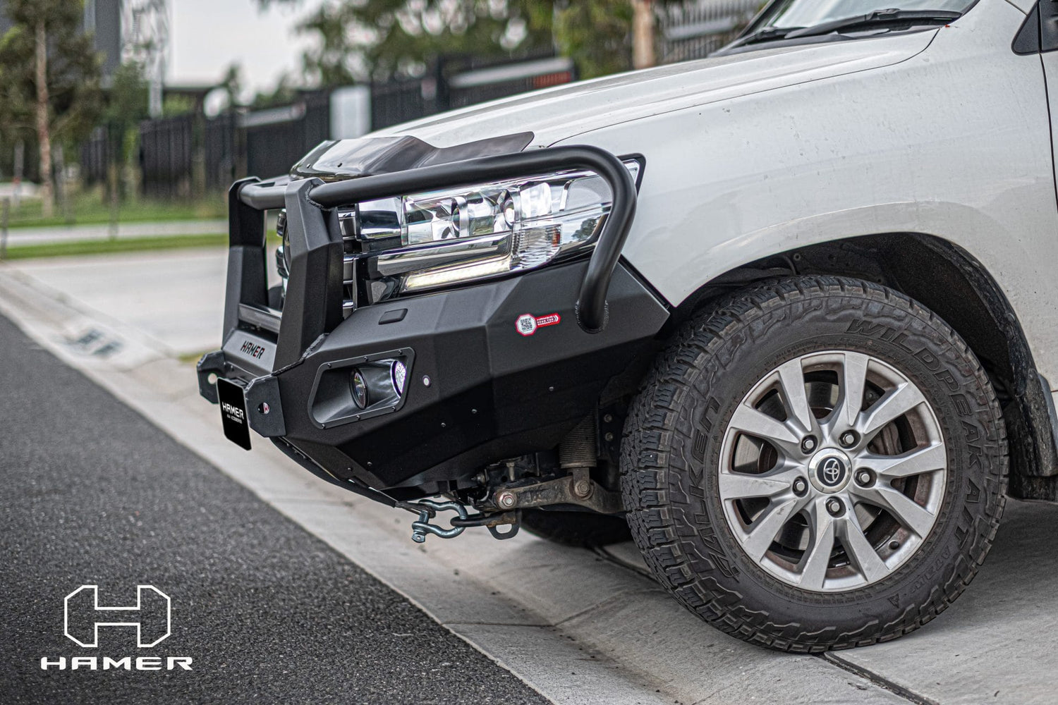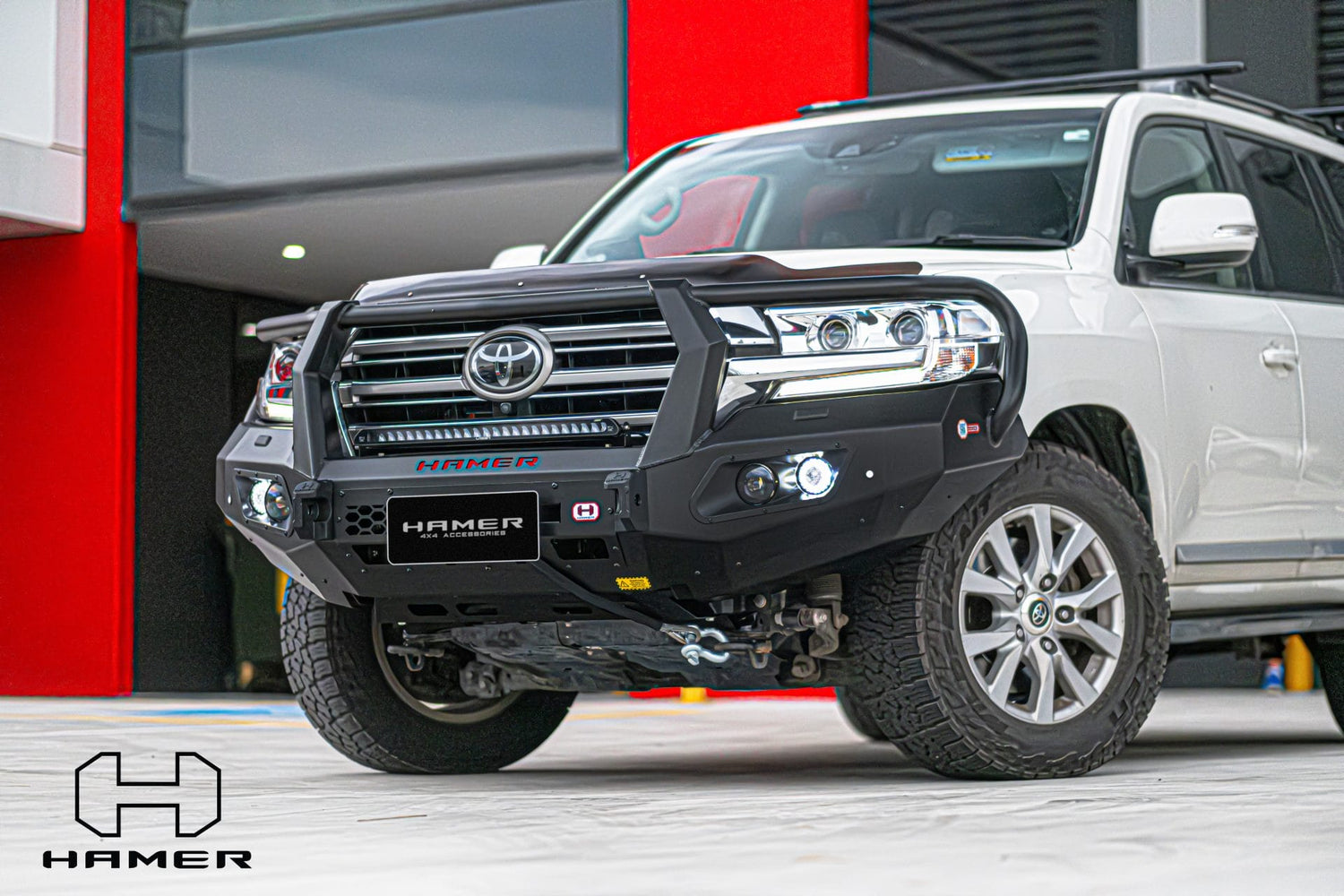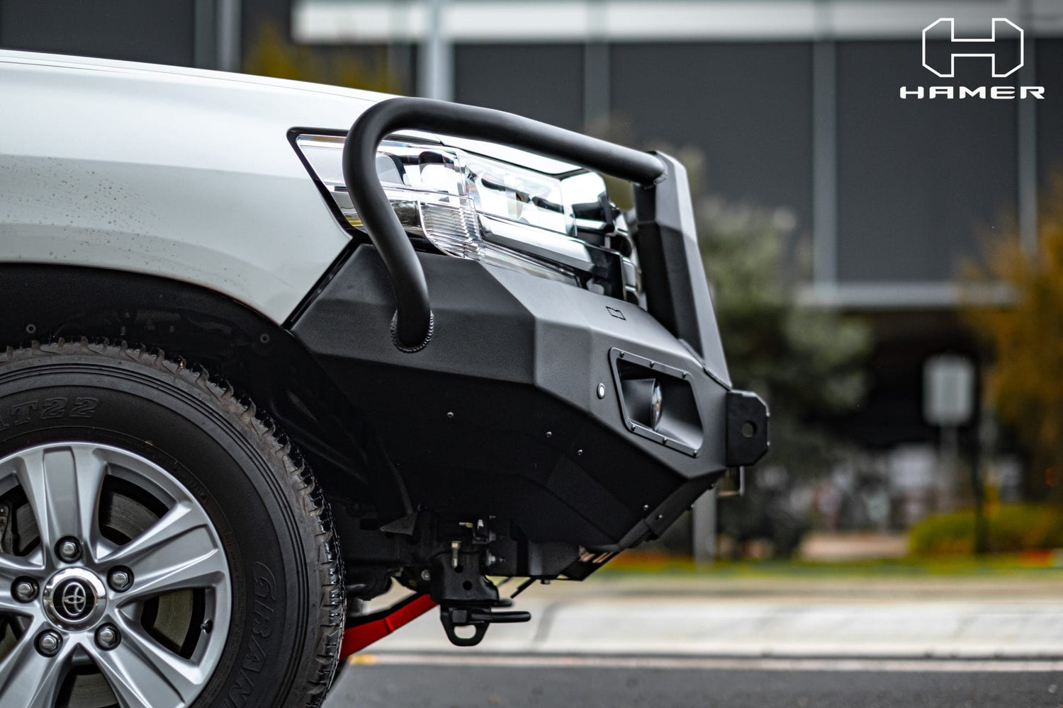 Introducing the Hamer King Series Plus Bull Bar, meticulously crafted to seamlessly enhance your Toyota Landcruiser 200 Series (2015 – 2021) while providing unparalleled protection. Designed to replace your bumper, this bull bar combines rugged aesthetics with functional excellence. Crafted from 3mm high-grade steel plate, it assures enduring strength and ADR/Airbag compliance for your peace of mind.