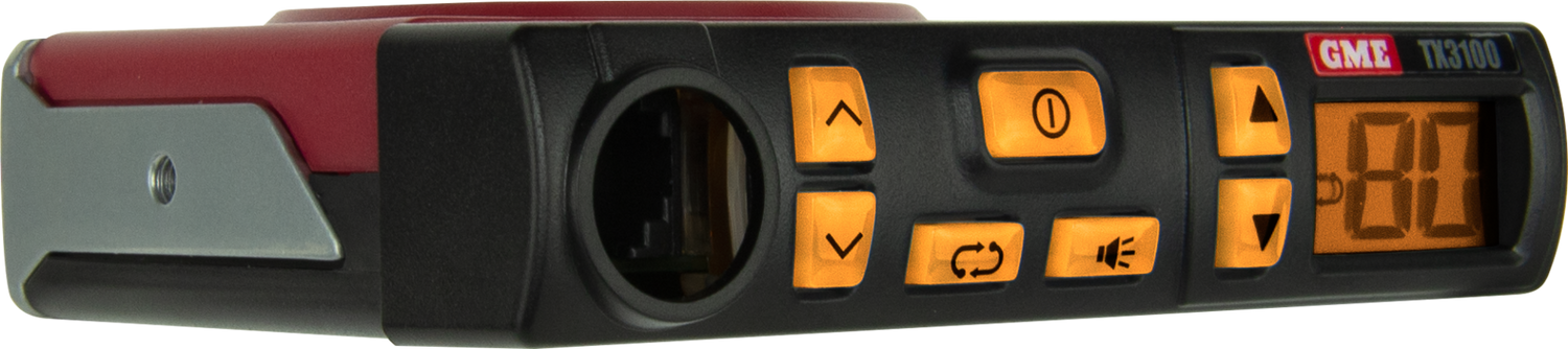 The TX3100DP, with its front mounted controls, is designed for unobtrusive mounting in modern vehicles and features a built-in speaker housed within an extremely compact case.