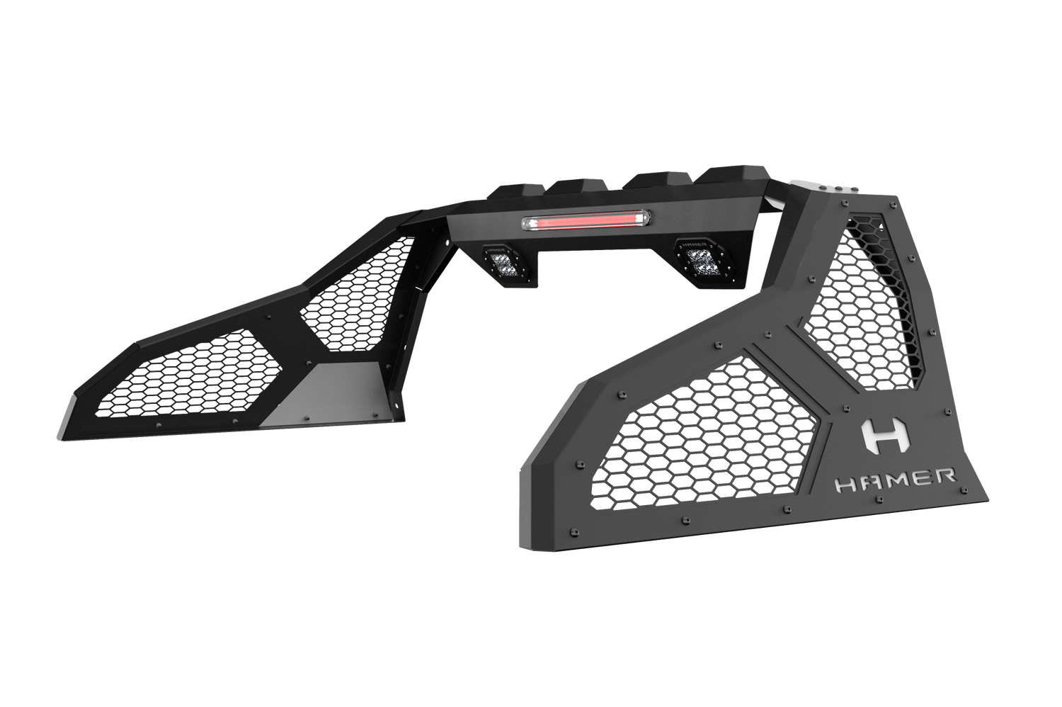 Embodying a rugged mesh design integrated with our signature Hammer logo on the side, the Warrior Sports Bar is engineered to turn heads and conquer trails. Equipped with reverse lights, brake lights, and work lights, ensuring optimum visibility in all conditions to ensure safety while you blaze your path into uncharted territories.