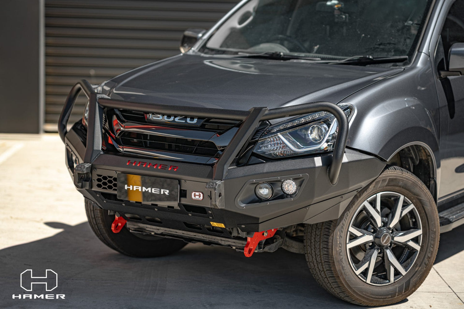 Hamer King series Plus bull bar is a bumper replacement bull bar that has been specifically designed to fit Isuzu MU-X ( 2016 – 2020 ). Not only adding a tough look to your vehicle, Hamer bull bar protects the front of your vehicle during an unexpected event. Stay confident in every journey you make.