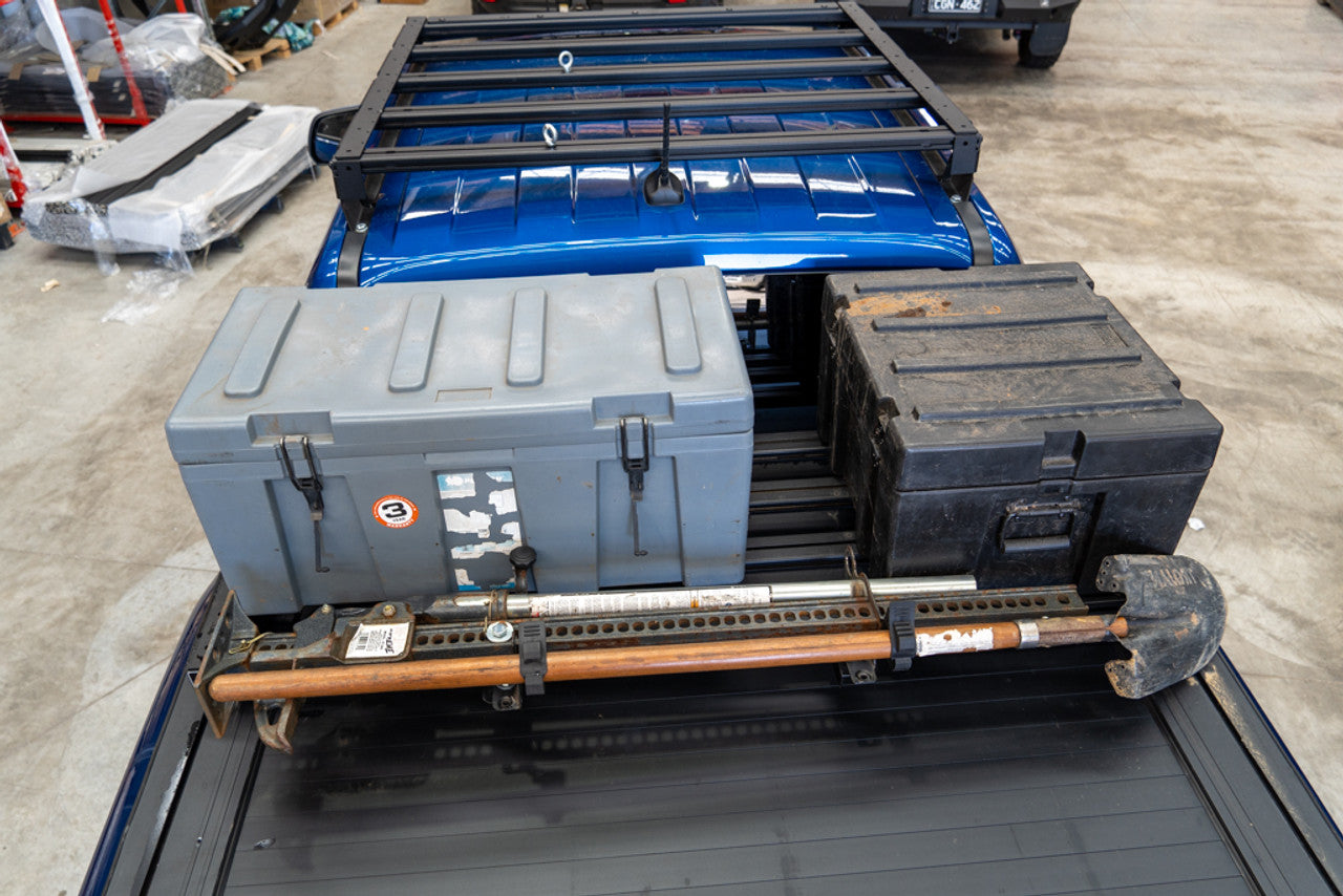 Meet your new adventure companion - the Scout Ute Tub Platform Rack Short. With taller legs that provide an extra 265mm of clearance, this rack is perfect for accommodating roller shutters. Durably designed with a 500mm base, it's the ultimate solution for all your gear hauling needs.