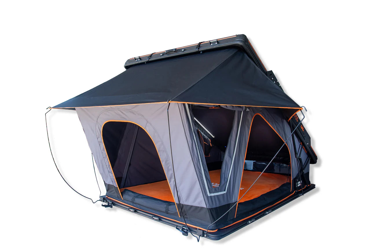 Introducing the CampBoss Ultra X Rooftop Tent, the epitome of luxury within the esteemed CampBoss product line. Elevate your camping experience with its expansive internal space, featuring a front scissor lift and a rear U-shaped arm for extended internal space.