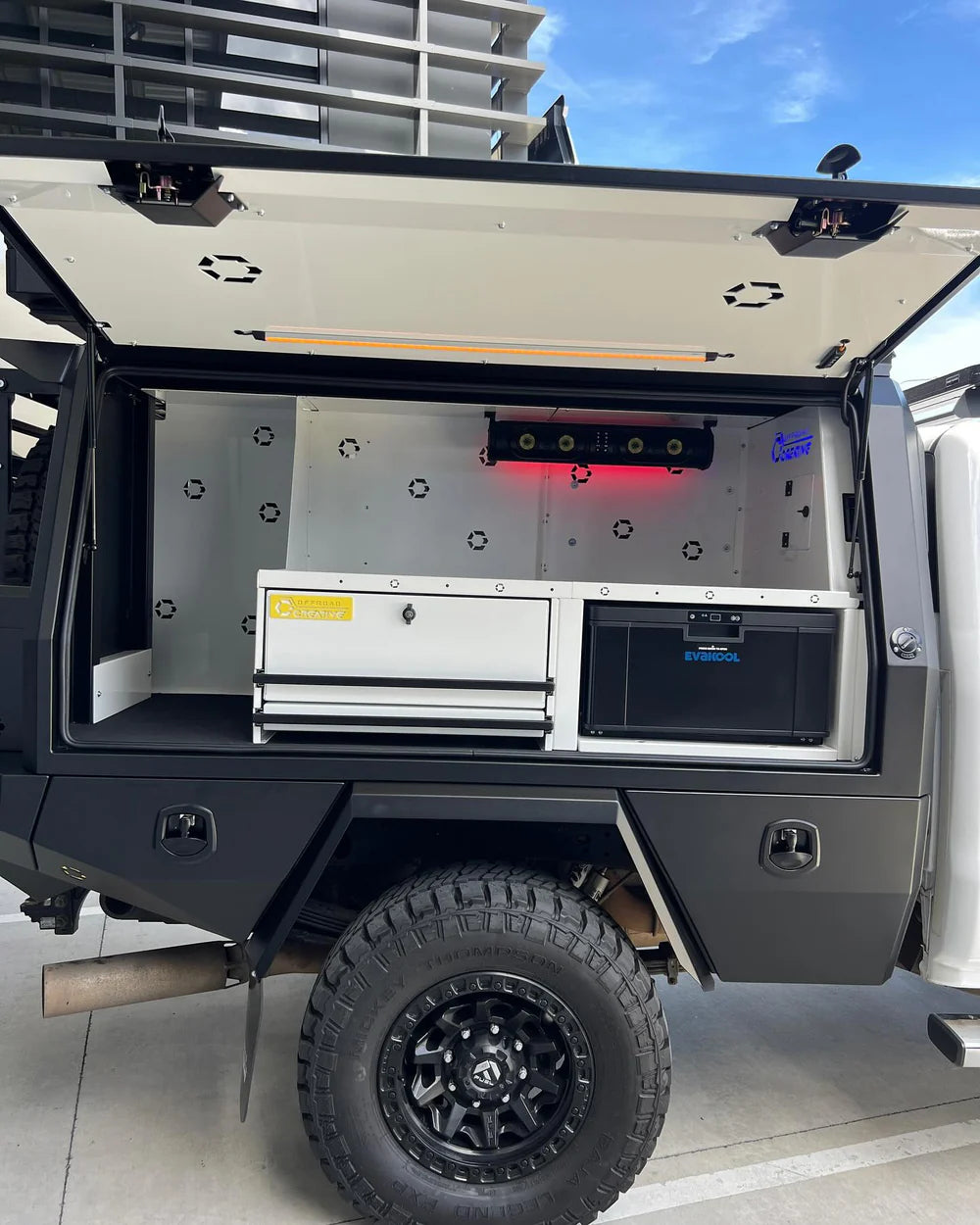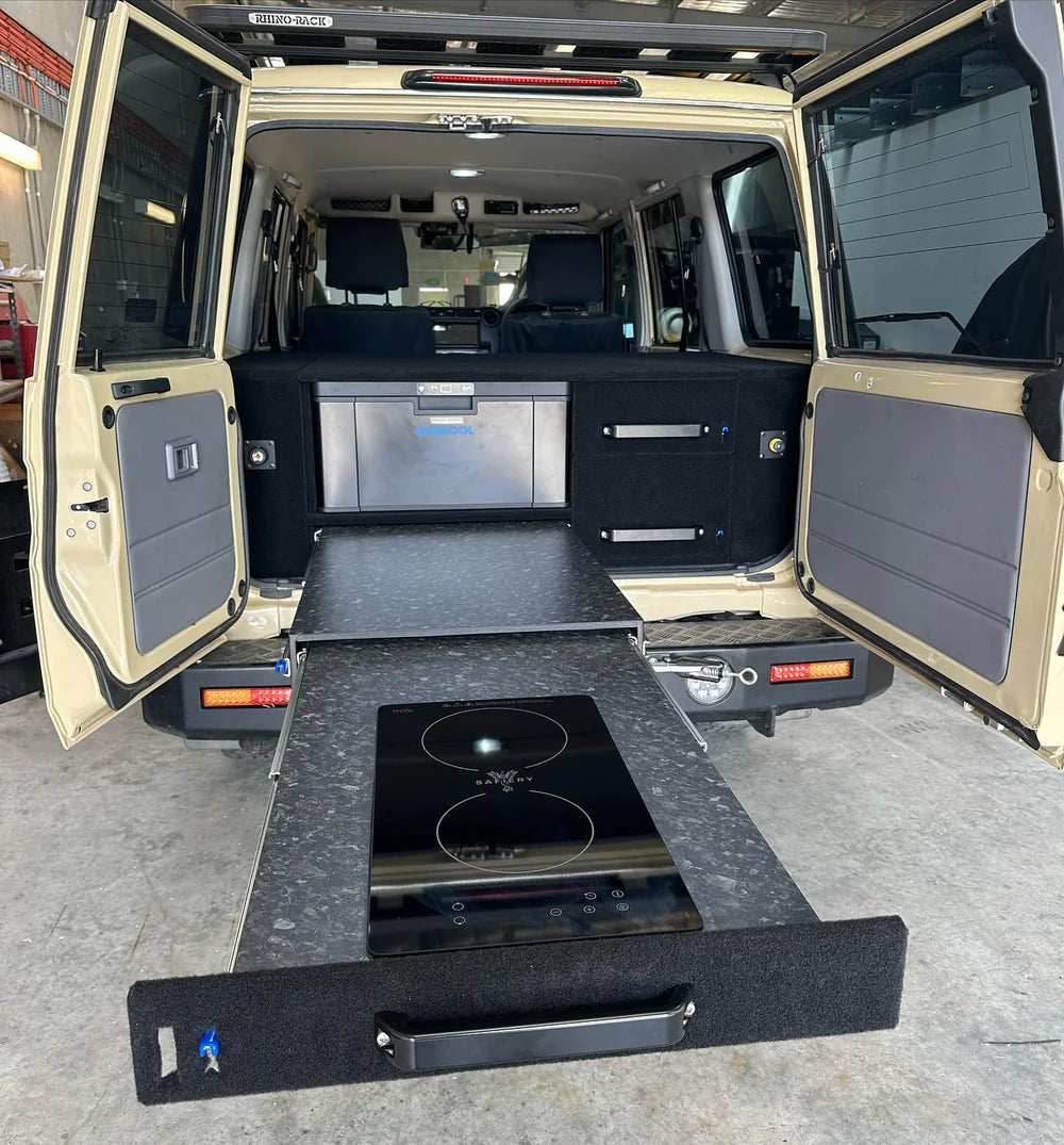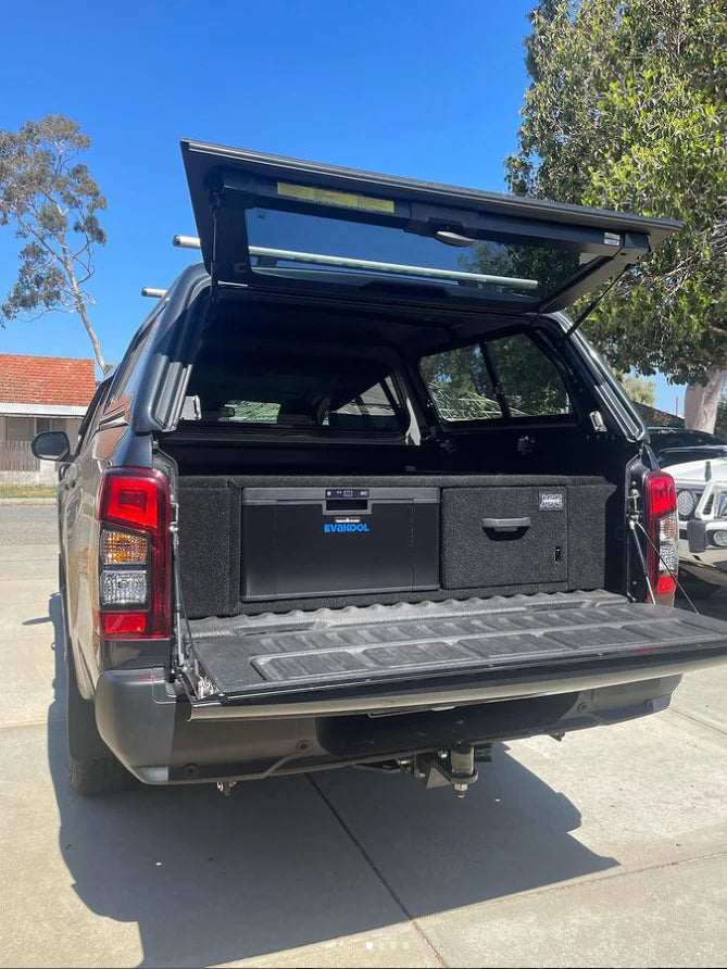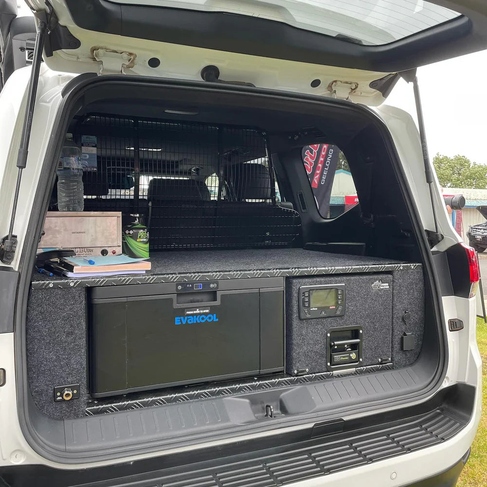 - Included: Heavy-duty floor plate-style bracket for securing the drawer fridge. The locking mechanism eliminates the need for drilling or extra tie-downs!