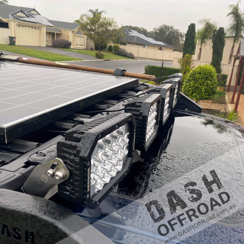 This light bracket is designed specifically for the DASH OffRoad 3/4 and full-length roof rack for the Nissan Y62 Patrol. It holds x5 Supernova Quad V2 Lights.