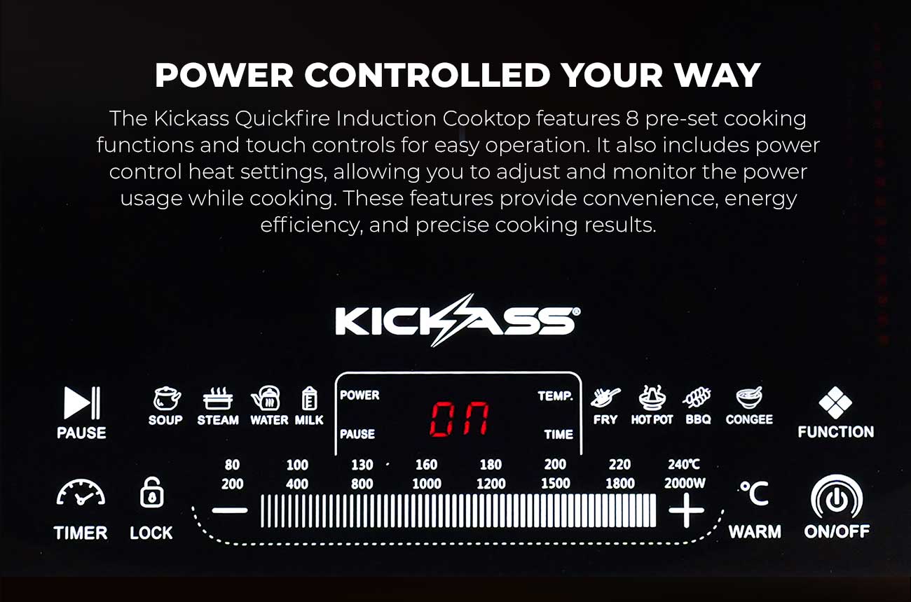 Powerful performance The KickAss Quickfire Portable Induction Cooktop delivers a maximum 2000W output, so you can indulge in exceptional cooking power.