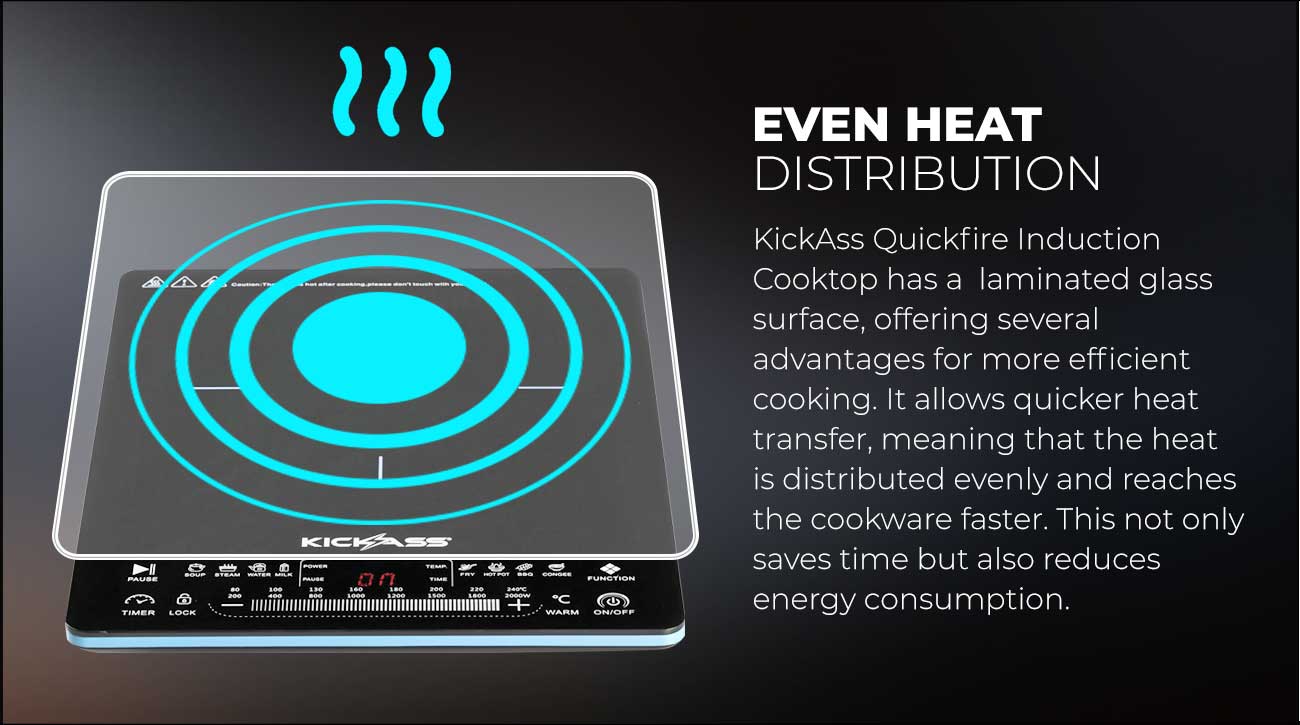 and precise cooking results. Construction KickAss Quickfire Induction Cooktop has a laminated glass surface, offering several advantages for more efficient cooking.