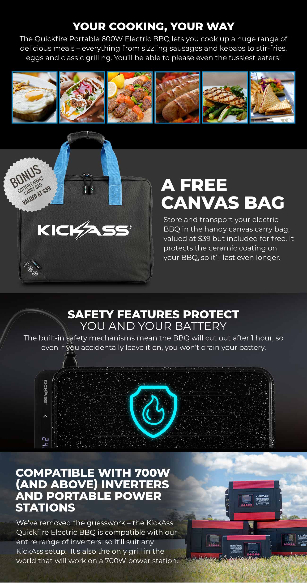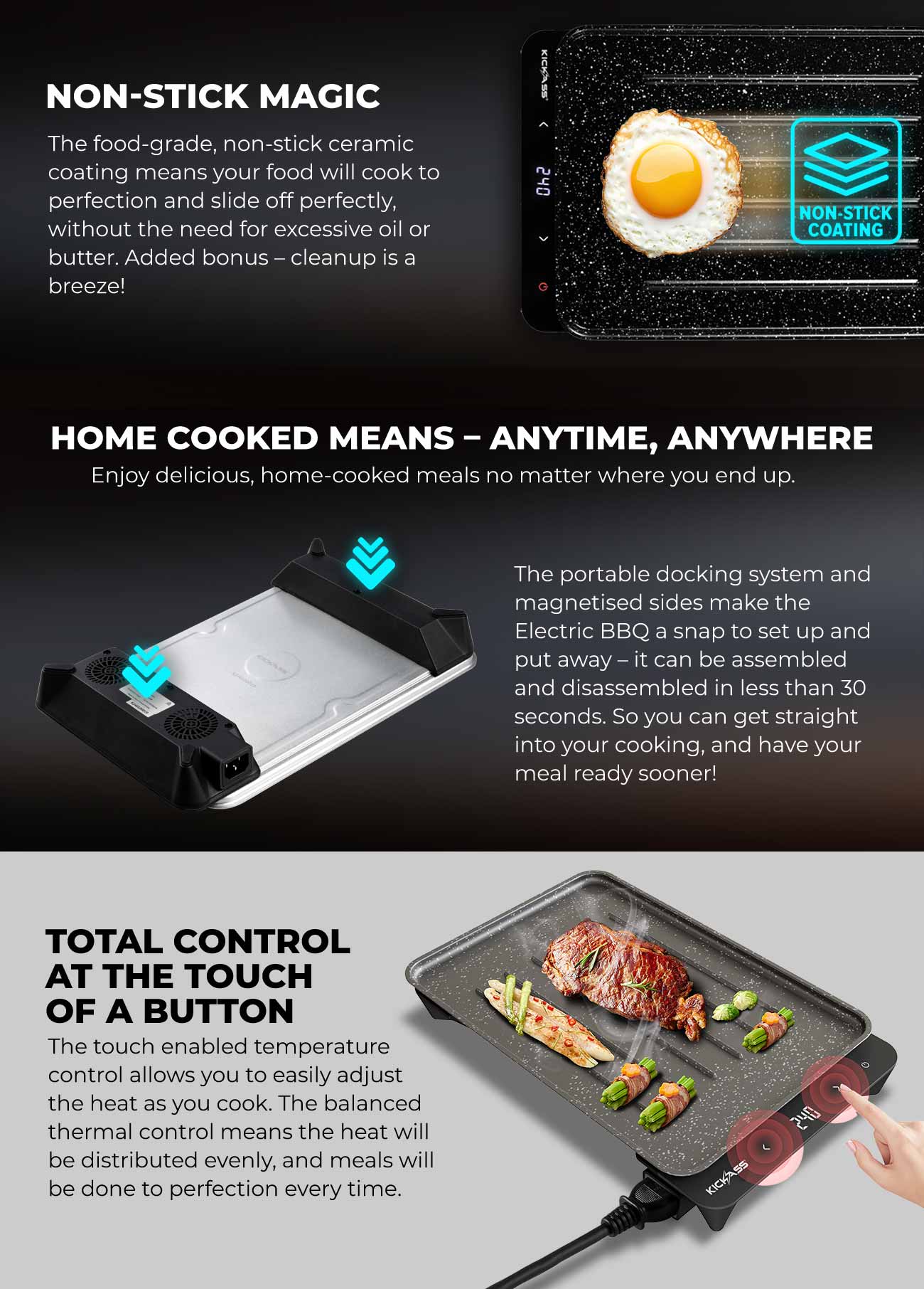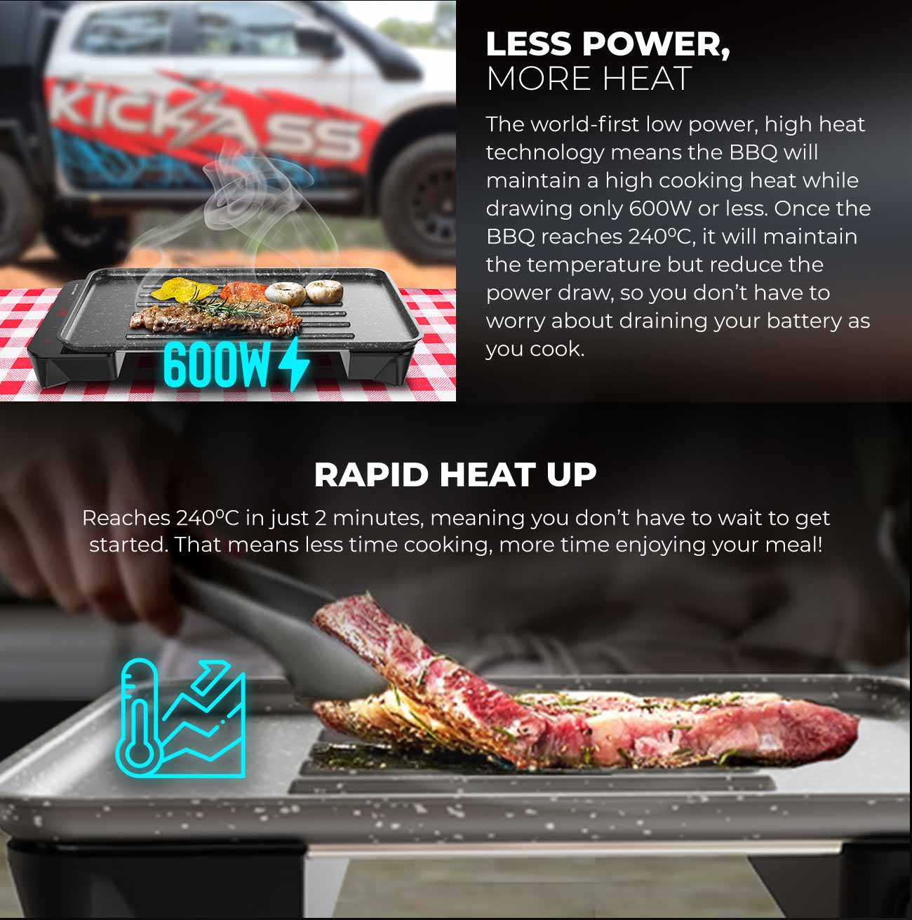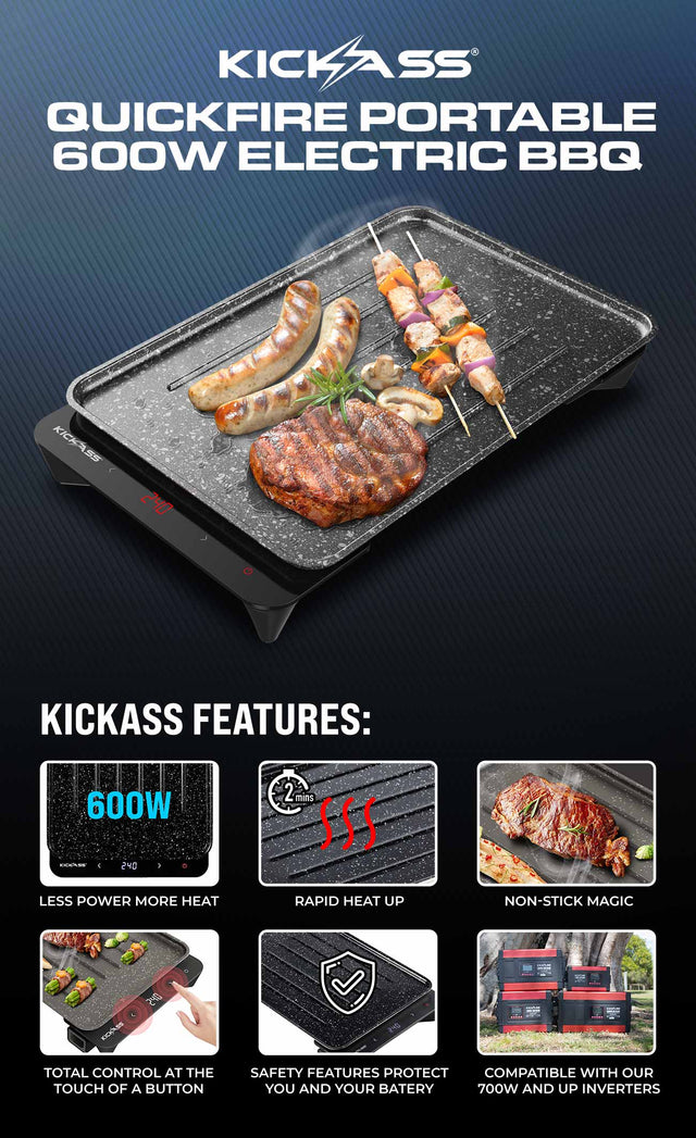 Enjoy sizzling meals anytime, anywhere with the KickAss Quickfire Portable 600W Electric BBQ