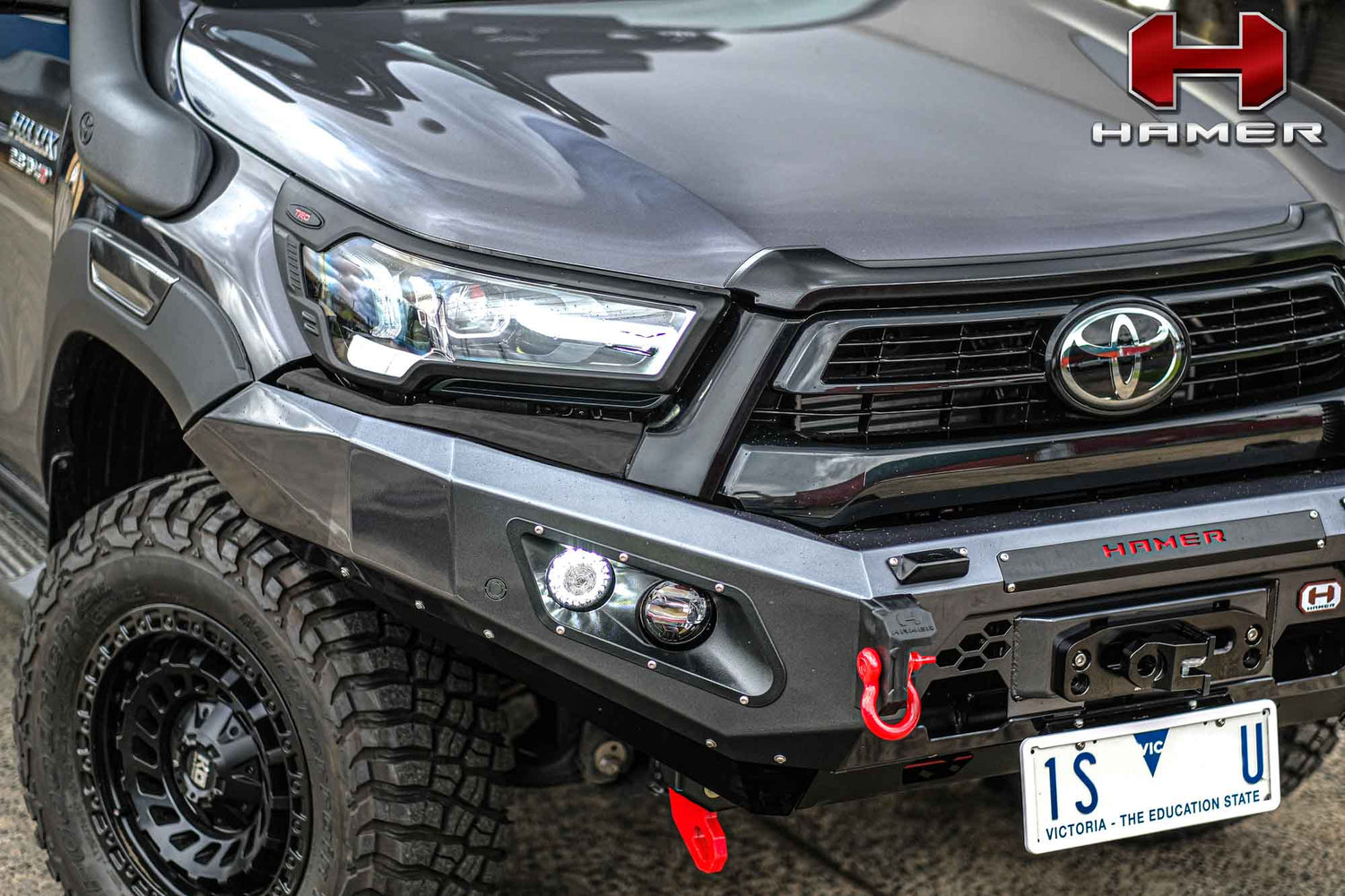 Hamer King series bull bar is a bumper replacement bull bar that has been specifically designed to fit Toyota Hilux (2020 – Present). Not only adding a tough look to your vehicle, Hamer bull bar protects the front of your vehicle during an unexpected event. Stay confident in every journey you make.