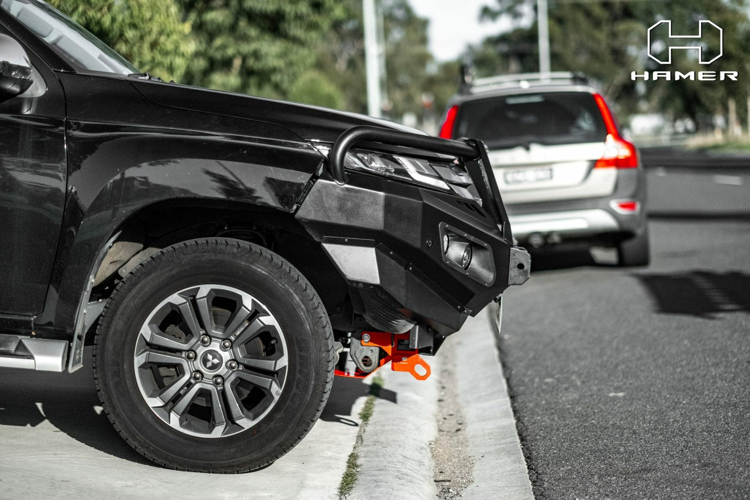 Introducing the Hamer King Series Plus Bull Bar for Mitsubishi Triton MR (2018 – Present). This rugged and meticulously designed bumper replacement bull bar is tailored to perfectly fit your Triton, ensuring not only an imposing appearance but also providing vital front-end protection during unforeseen situations. Crafted from robust 3mm high-grade steel plate, this bull bar meets ADR and airbag compliance standards, demonstrating its safety credentials.