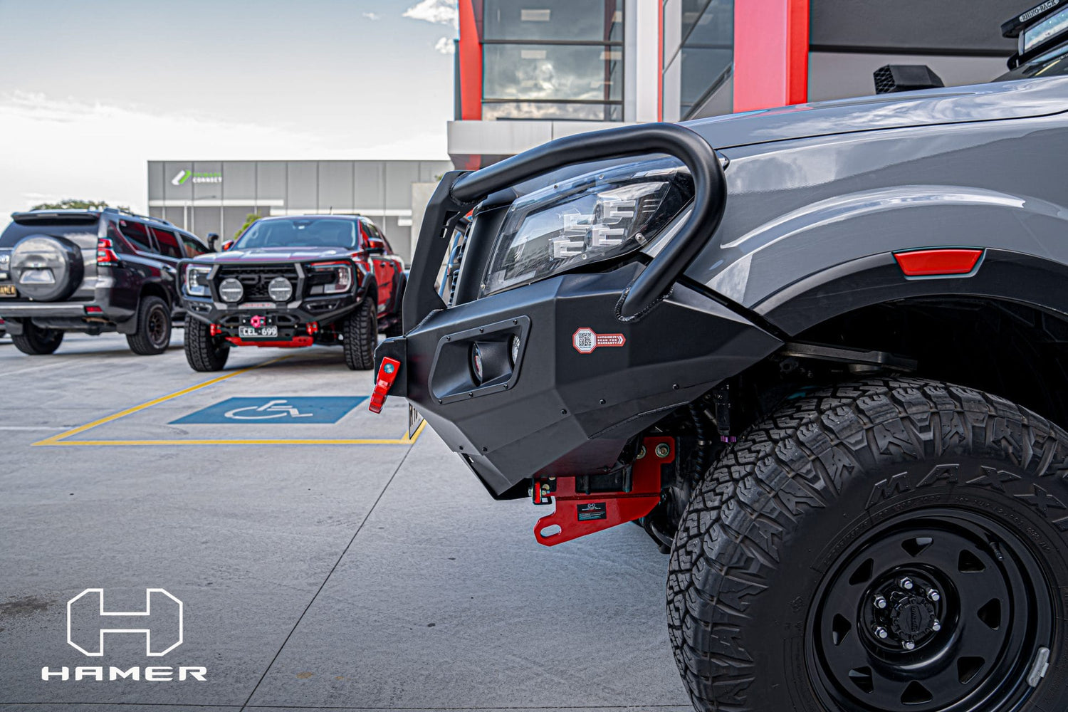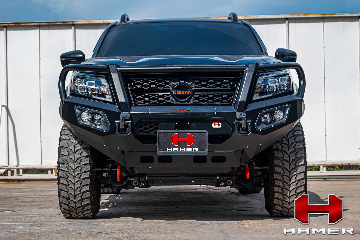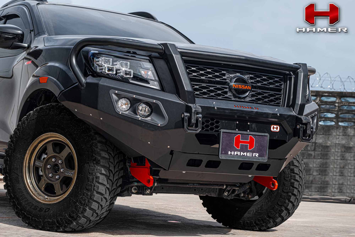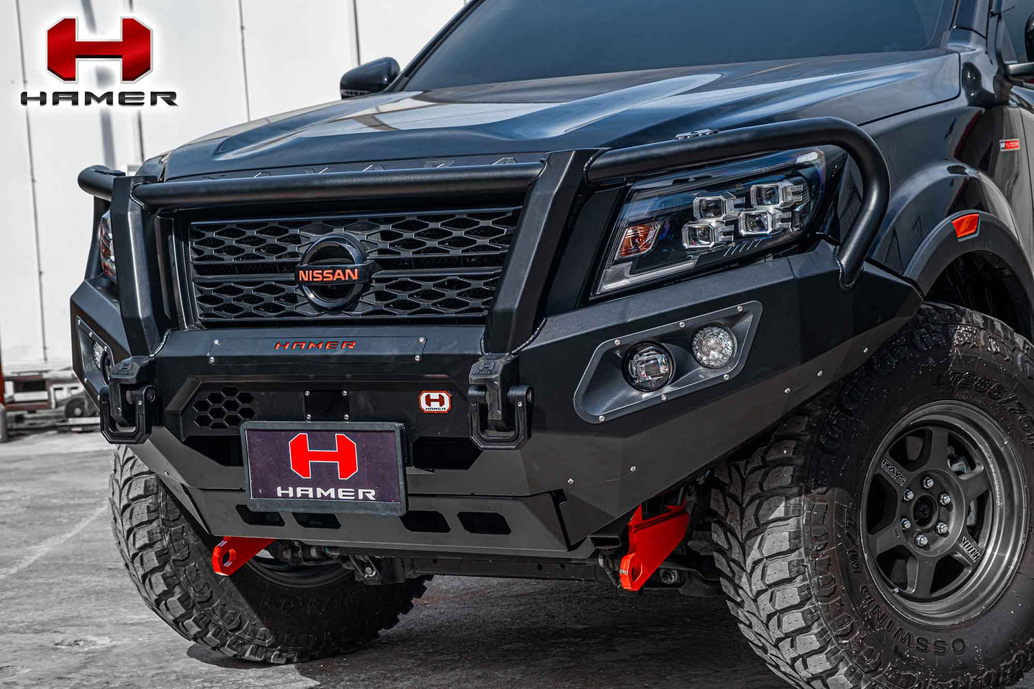 Hamer King series Plus bull bar is a bumper replacement bull bar that has been specifically designed to fit Nissan Navara (2021 – Present). Not only adding a tough look to your vehicle, Hamer bull bar protects the front of your vehicle during an unexpected event. Stay confident in every journey you make.