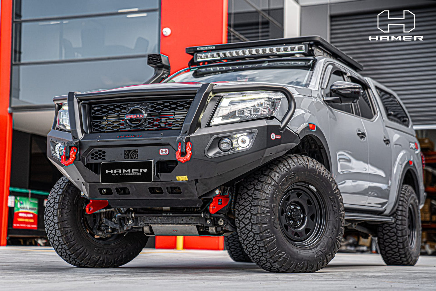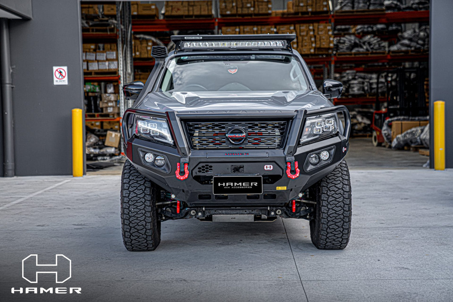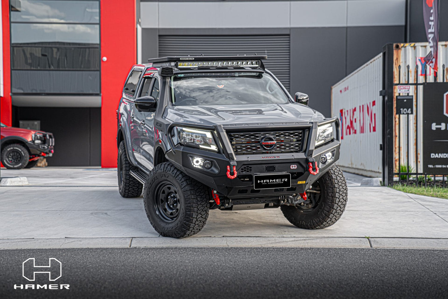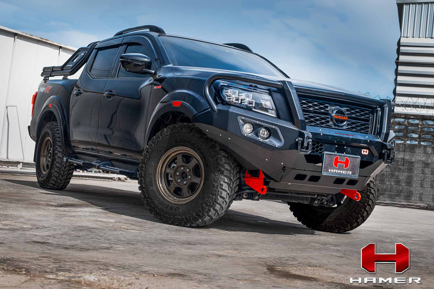 Hamer King series Plus bull bar is a bumper replacement bull bar that has been specifically designed to fit Nissan Navara (2021 – Present). Not only adding a tough look to your vehicle, Hamer bull bar protects the front of your vehicle during an unexpected event. Stay confident in every journey you make.