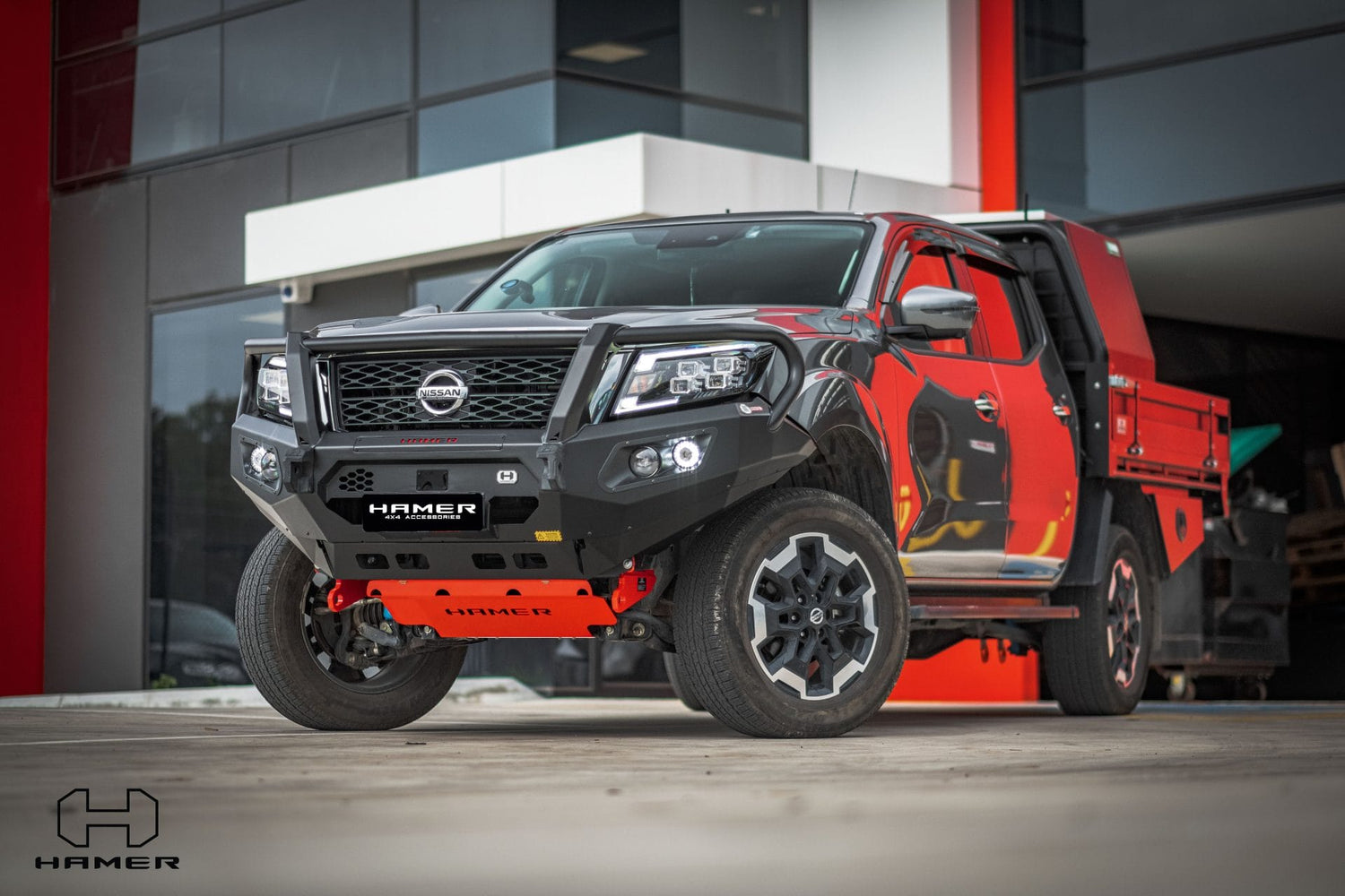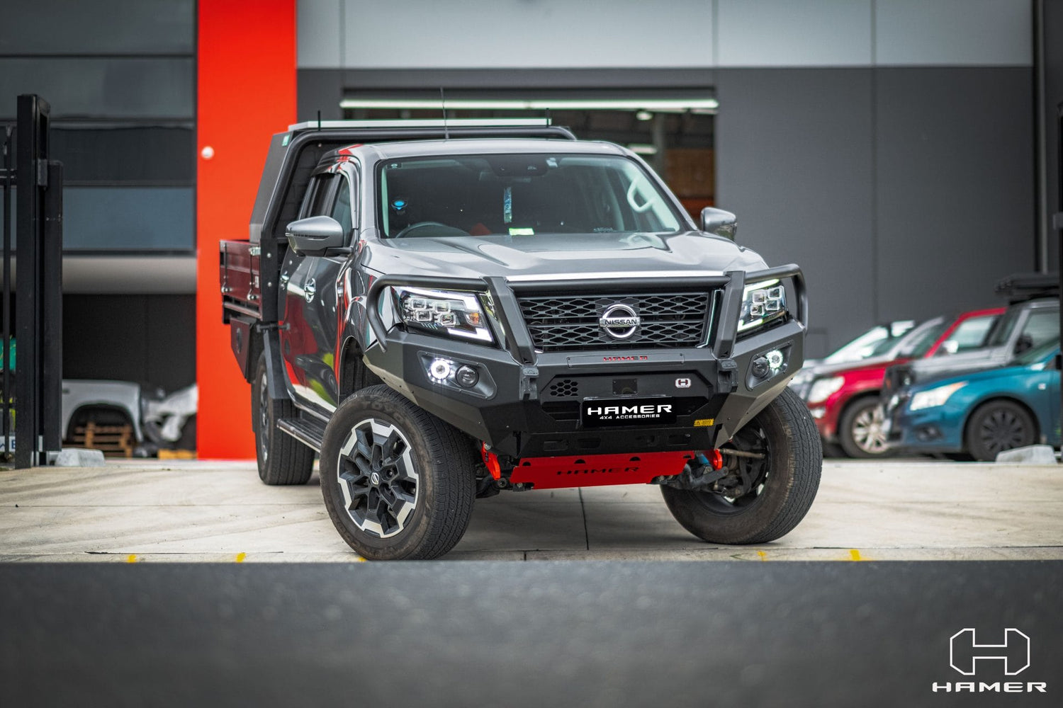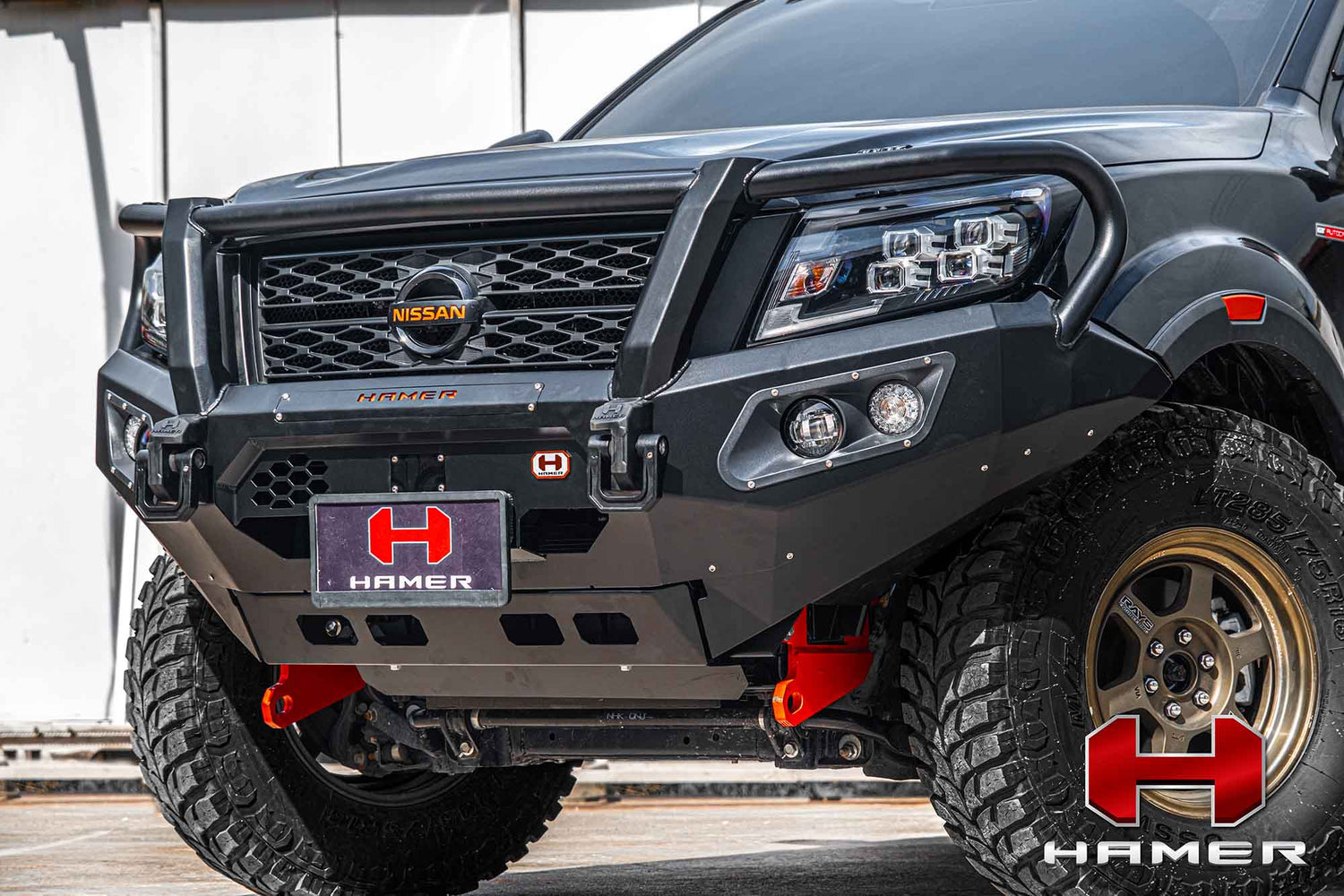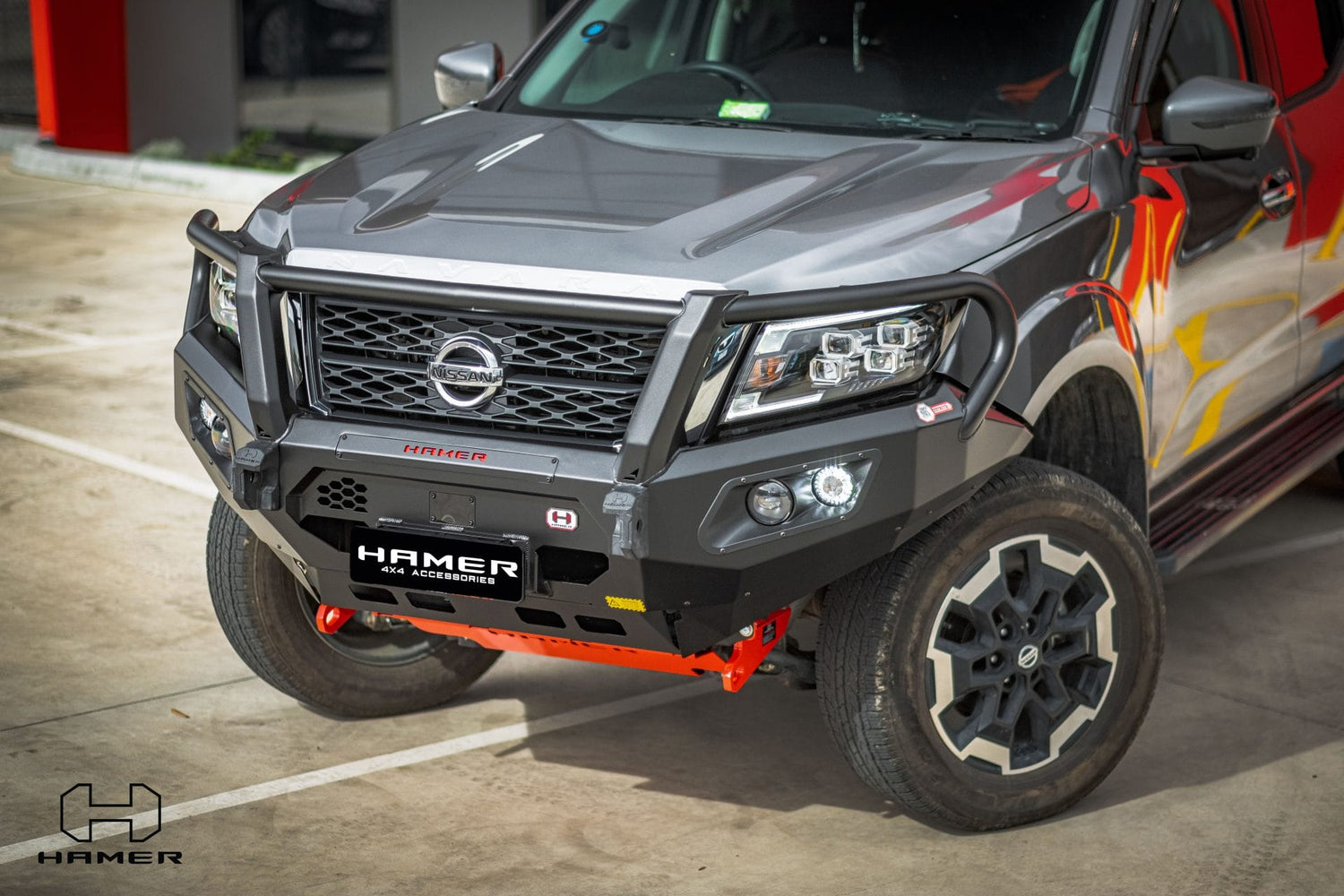 Hamer King series Plus bull bar is a bumper replacement bull bar that has been specifically designed to fit Nissan Navara (2021 – Present). Not only adding a tough look to your vehicle, Hamer bull bar protects the front of your vehicle during an unexpected event. Stay confident in every journey you make.