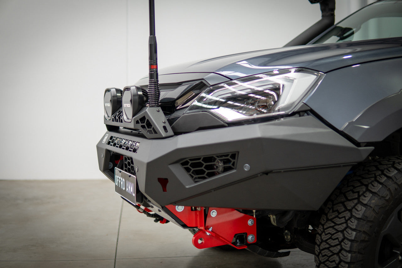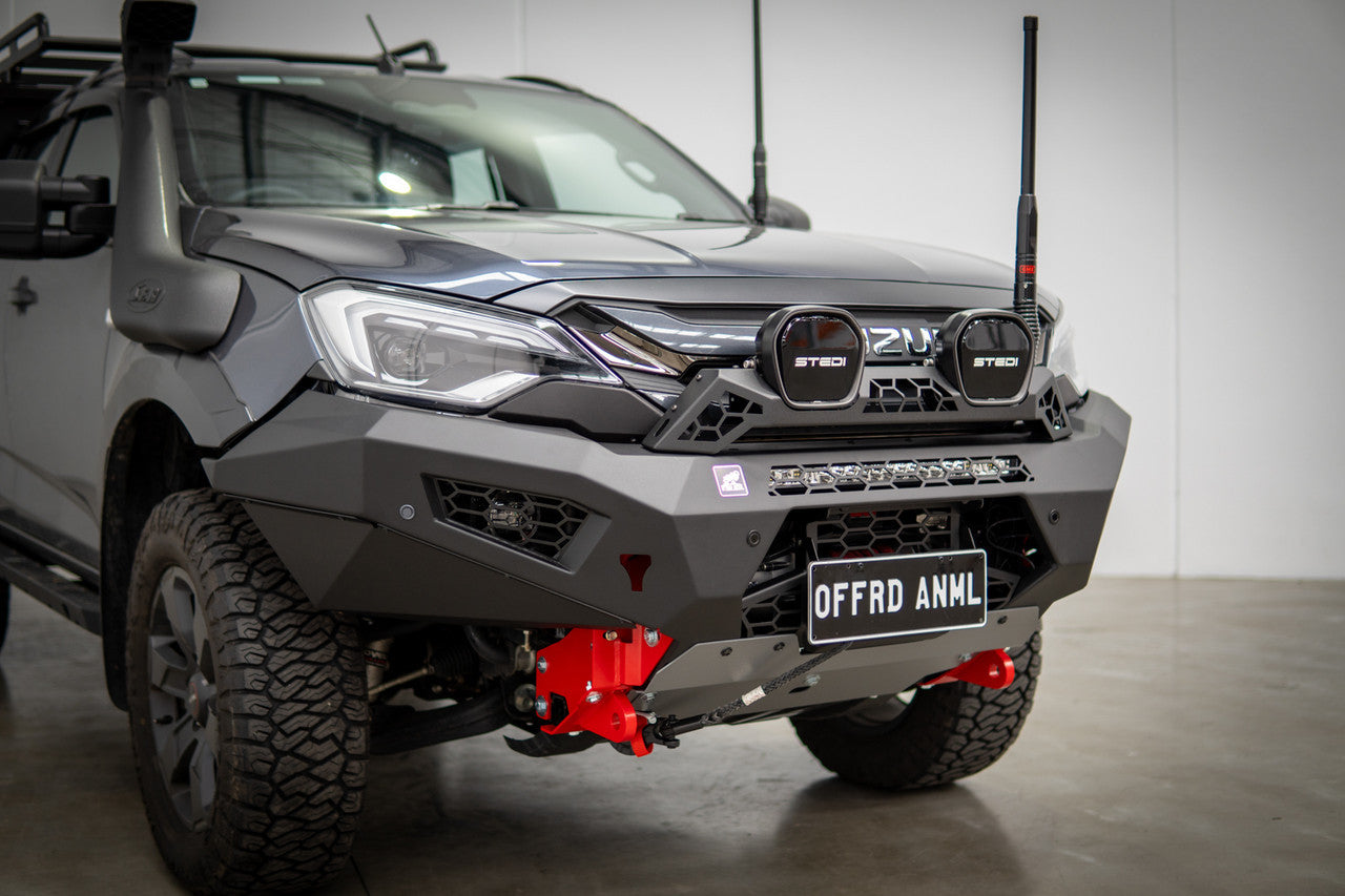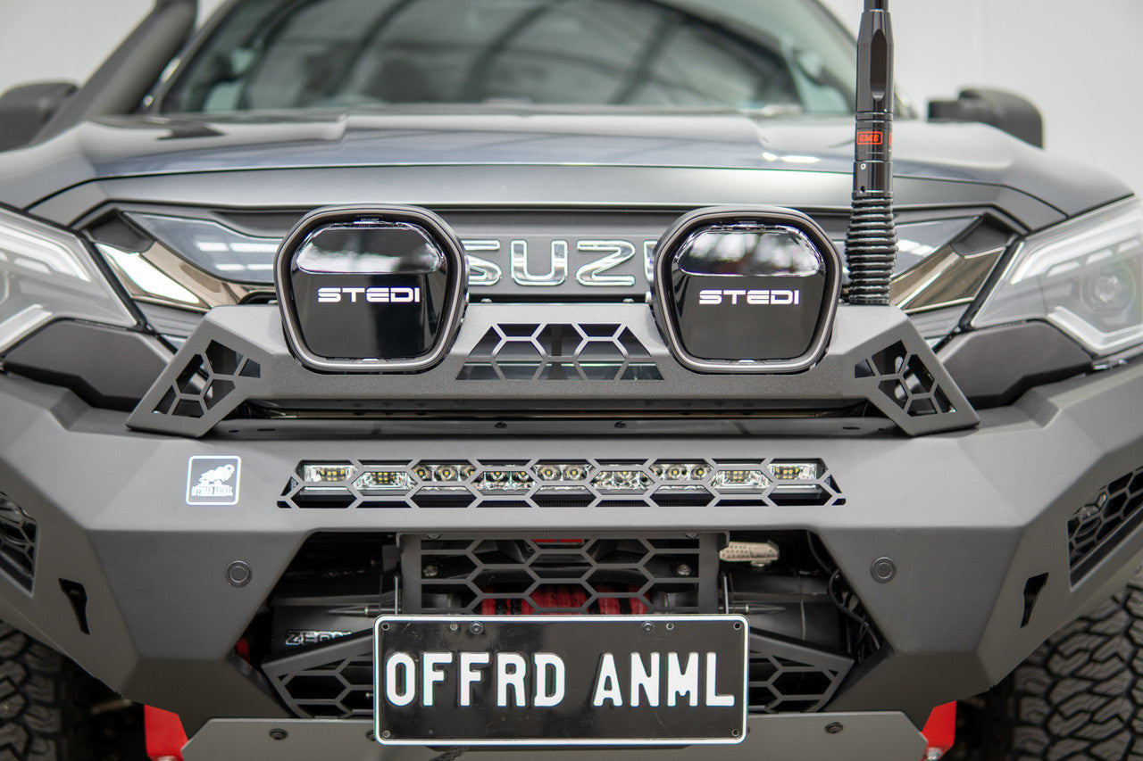 Upgrade your Predator bar with the Rally Hoop for Stedi Type X EVO 7 inch lights! Built with durable steel, this 2-piece hoop adds a stylish touch while protecting your grill and lights. Inspired by rally cars, with functional speed holes for optimal airflow to your radiator. Make a bold statement on the road!