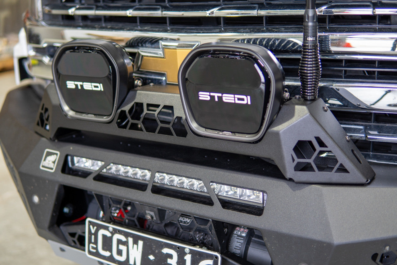 This version houses two Stedi Type X Evo 8.5 inch lights only these lights, we have versions to suit Offroad Animal lights as well.