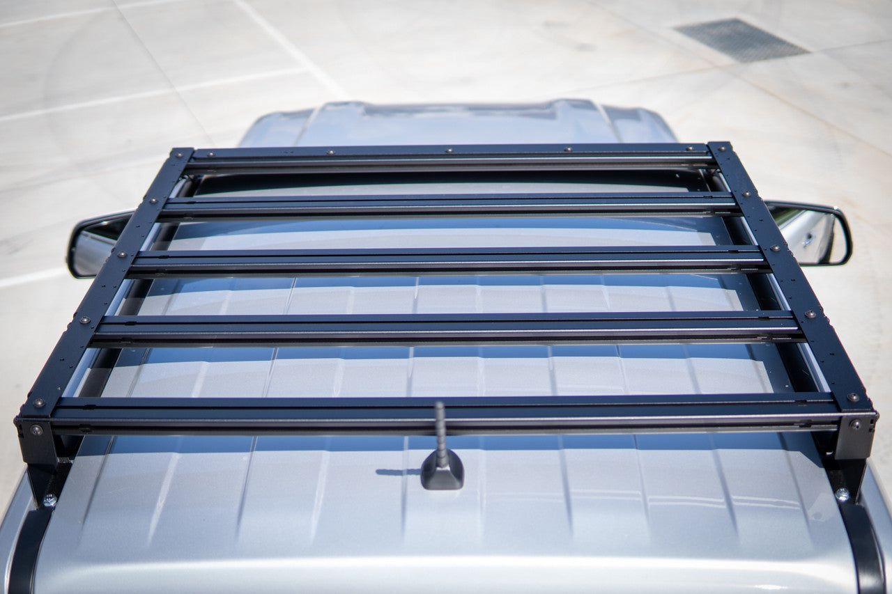 - Rack measures 1210mm wide, and 1230mm long (tip to tip.) The rack adds only 75mm to the height of the roof.