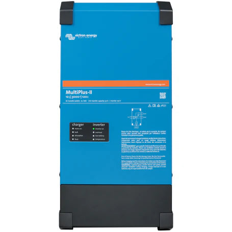 The MultiPlus-II 12/3000/120-32 is a multifunctional inverter/charger with all the features of the MultiPlus, enhanced with an external current sensor option which extends the PowerControl and PowerAssist function to 50A resp. 100A. It's designed for professional marine, yachting, vehicle, and land-based off-grid applications. The MultiPlus-II is also equipped with built-in anti-islanding functionality and is suitable for both off-grid and grid-connected PV systems.